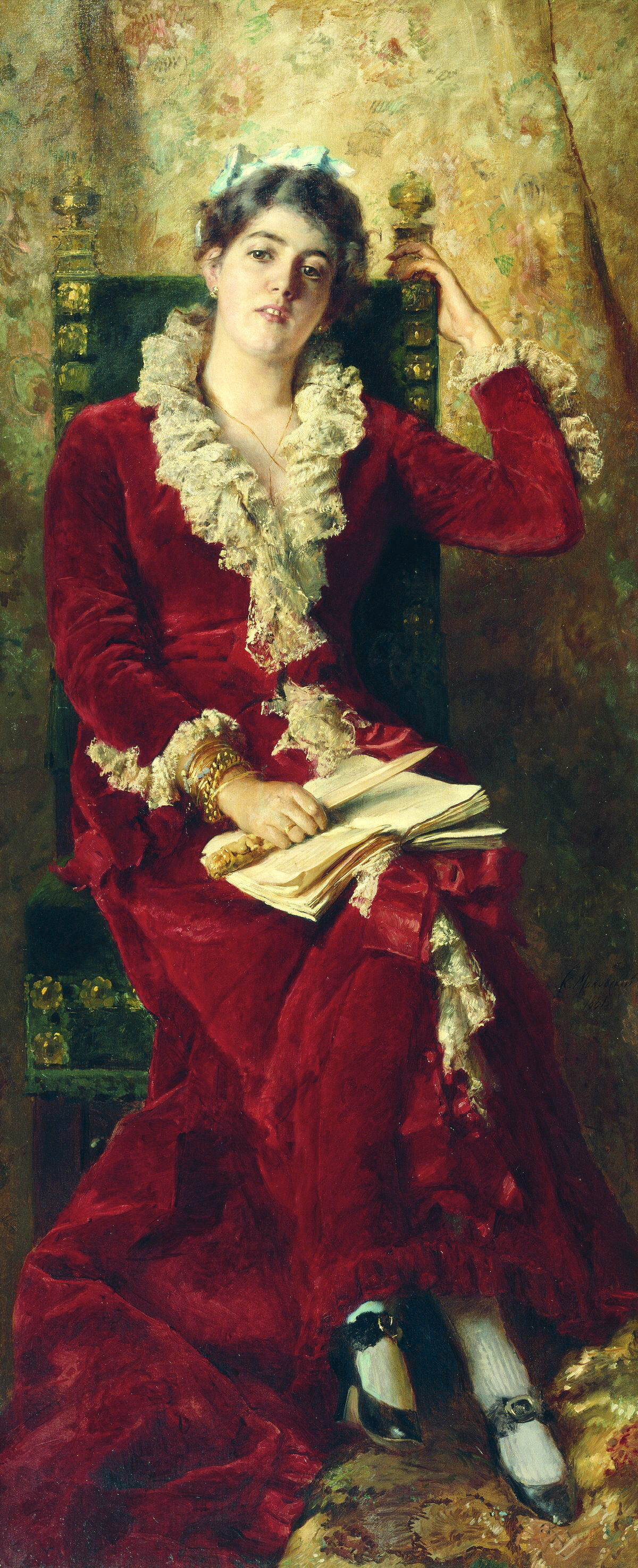 Když jsem ji vdechovala, nepředstavovala jsem si svou kosmetičku, která mi ji poprvé představila, ani Annu Mouglalis z reklamních plakátů. Místo toho jsem si představila Julii Makovskou, manželku a múzu umělce Konstantina Makovského, jak se objevuje na jeho portrétu z roku 1881. Na obraze je oblečena do sametových lehátkových šatů, leží v elegantní póze, zahloubaná do myšlenek nad knihou. Na tomto portrétu není nic zvlášť převratného, ale zaujme opulentností své krásy a hypnotizujícím realismem textur – sametu, krajky a teplé, zářivé pleti samotné ženy.