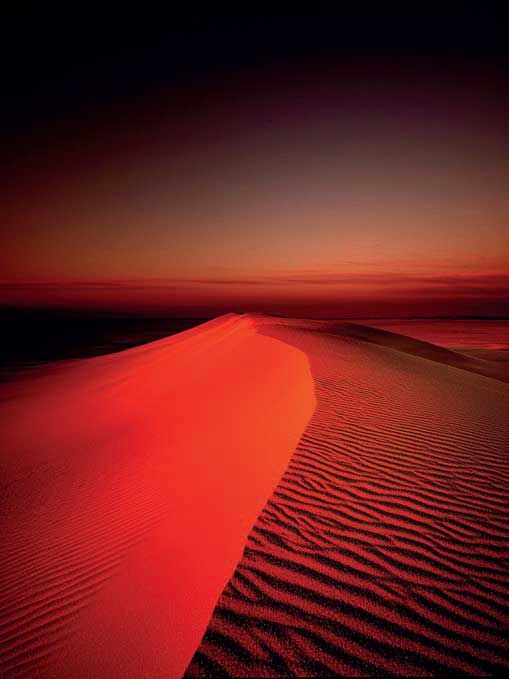 Oslnivá smyslová odysea, kde se věda snoubí s emocemi a světlo se stínem. Uprostřed pouště plane rudá sféra jako přelud – pocta japonskému vycházejícímu slunci, symbolu znovuzrození a energie.