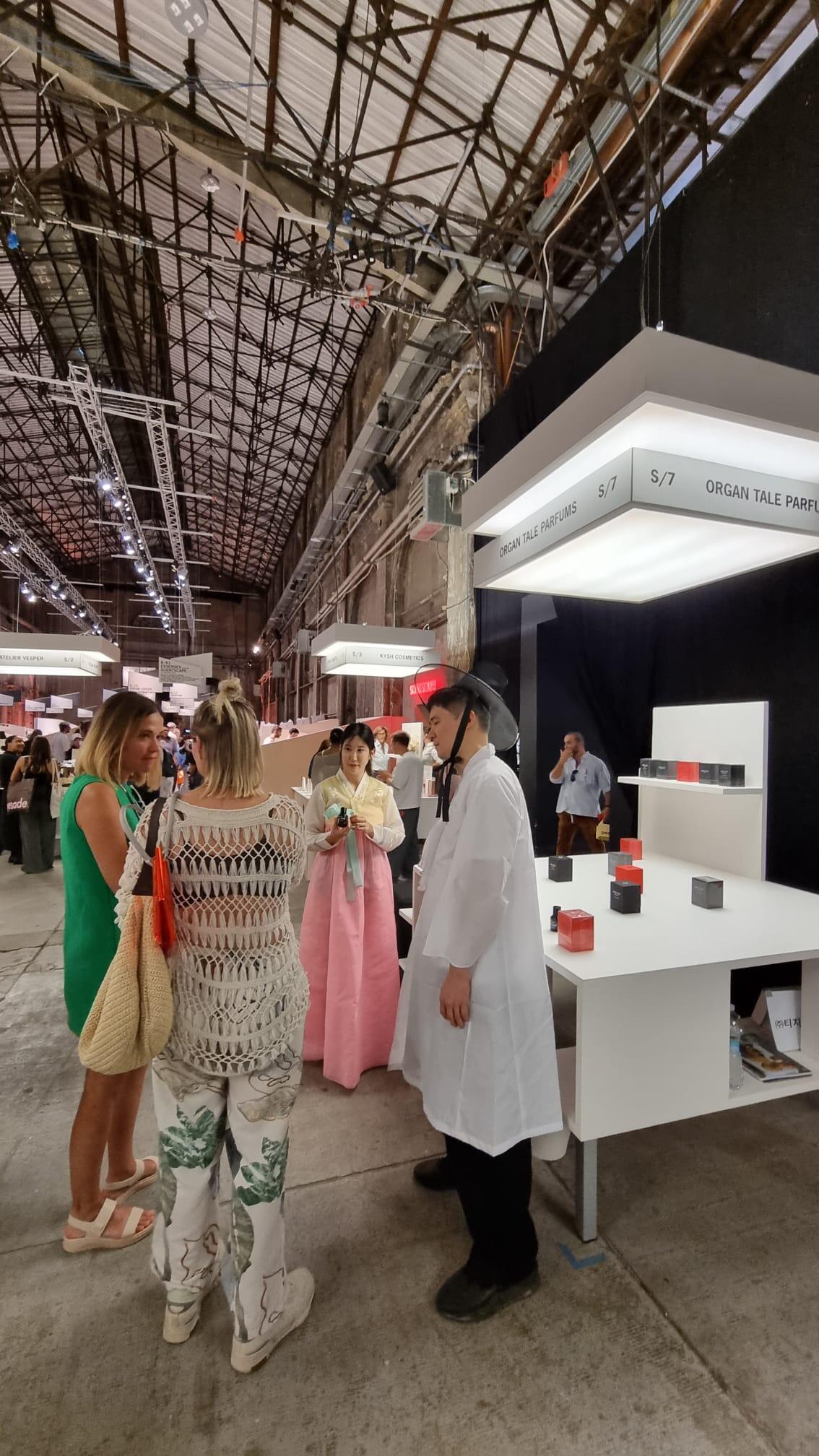A pak tu byl stánek BORNTOSTANDOUT®, rudá pevnost, jejíž stěny lemovaly flakony jako bystré stráže. Krása a fantazie parfumérů přesně odpovídaly tomuto nápaditému způsobu, jak vystoupit z davu.