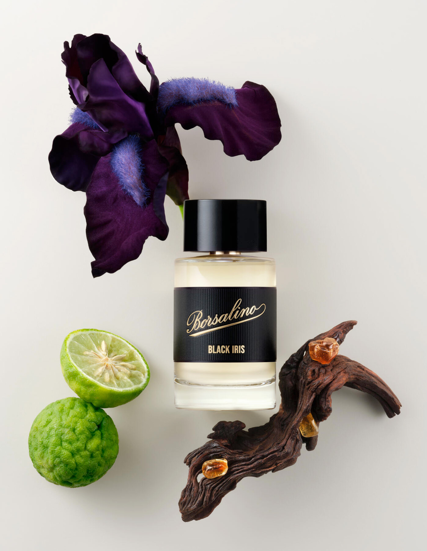 Pak se rozvine kosatcové máslo se svou pudrovou hebkostí a propojí se s jemností mrkvového semínka. Volba kosatce není náhodná: jeho sametově nadýchané tóny dokonale evokují strukturu i vůni kloboukové plsti. Charakteristická elegance kosatce zároveň skvěle ztělesňuje nadčasový obraz Borsalina – filmové ikony, která se proslavila mimo jiné i na plátně ve stejnojmenném filmu. A nakonec je to i odkaz na italské kořeny značky, protože Iris Pallida se pěstuje mimo jiné ve Florencii. Několik diskrétních dřevitých doteků podtrhuje zemitý efekt kosatce.