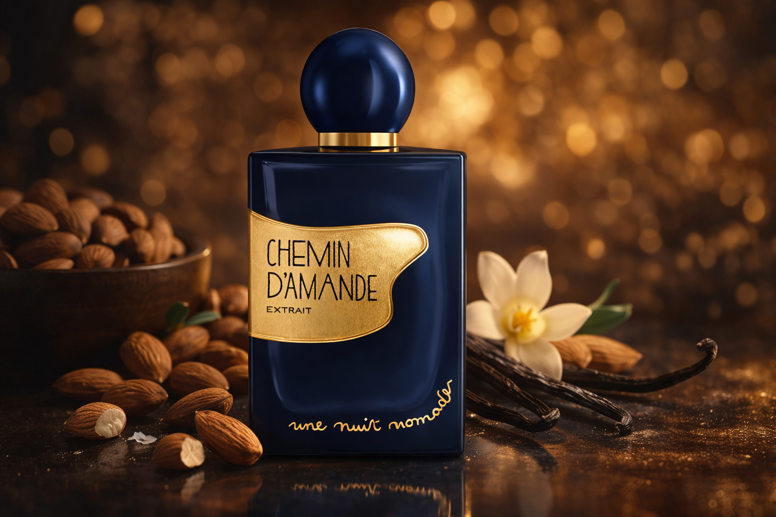 Mandle se stávají mléčnými – připomínají mandlové mléko, teplé a hladké, lehce oslazené, ale nikdy ne přeslazené. Vedle nich tiše rozkvétá mandlový květ. Je vzdušný, jemný a průsvitný, působí spíše jako záře než jako výrazná květinová nota. Toto květinové pozadí je zásadní: zabraňuje tomu, aby se vůně stala příliš doslovnou nebo těžkou, zvedá gurmánské jádro a dodává mu eleganci a dech.