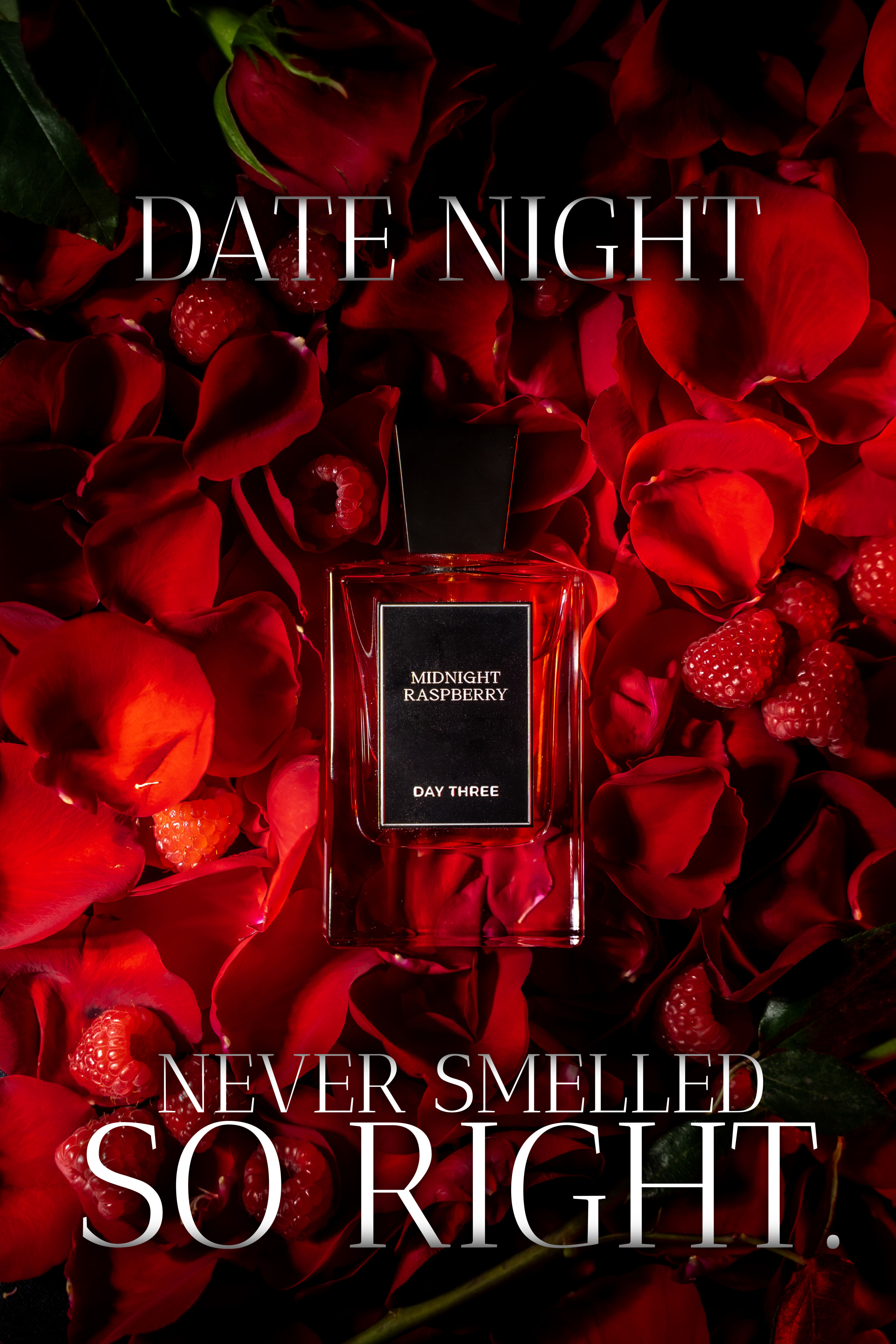 Day Three Fragrances uvádí svou nejnovější, netrpělivě očekávanou novinku: MIDNIGHT RASPBERRY. Navazuje na předchozí letošní vůně značky – Tres Oros (březen), Royal Reflection (květen) a Desert Rain (červenec). Tato vůně je extrait de parfum s výraznou dávkou přírodních oudových olejů, speciálně vytvořenou malinovou notou a luxusním akordem pižma.