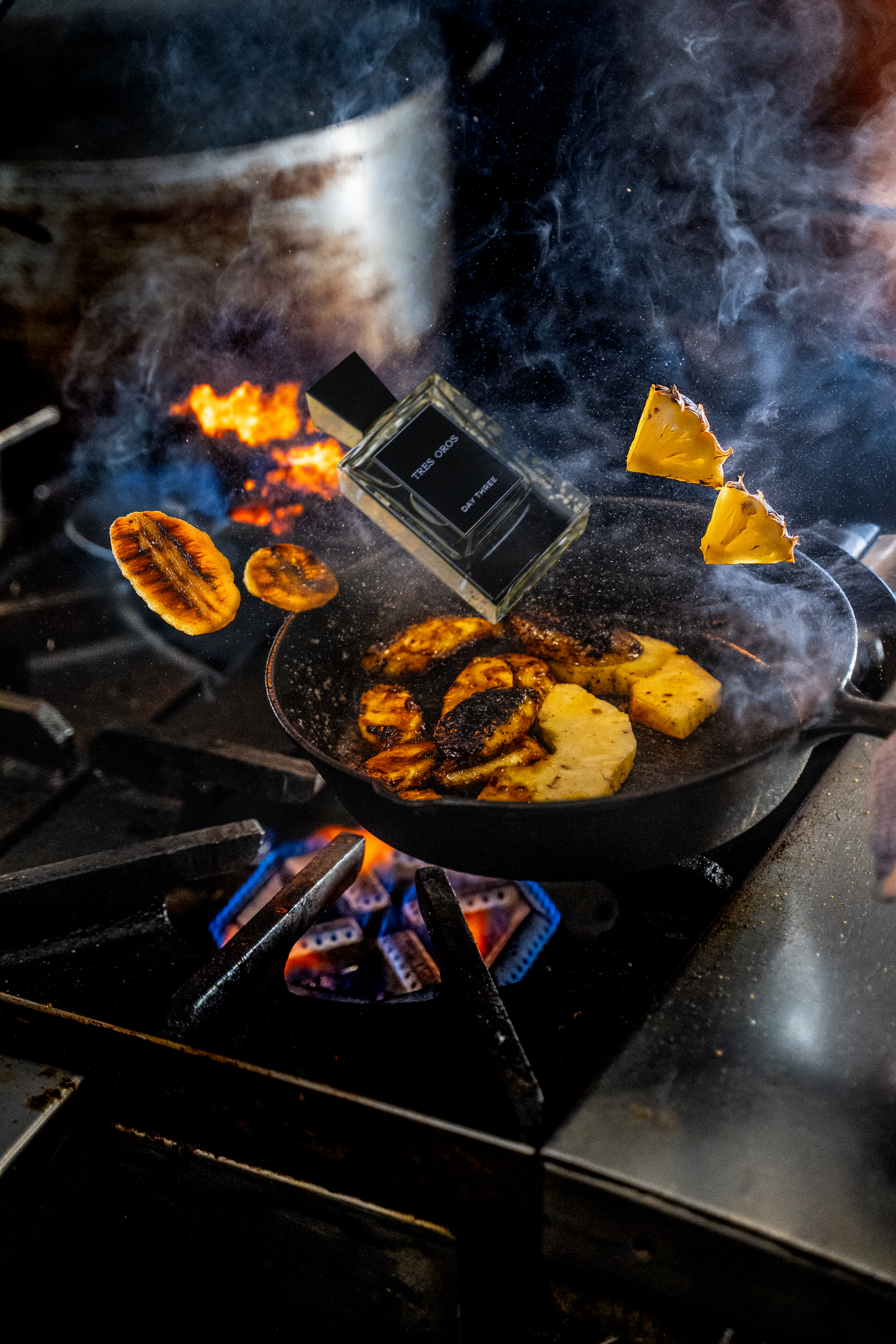Tres Oros byla "inspirována sladkostí dominikánské pochoutky a vytvořena pro milovníky vůní, kteří touží po něčem odvážném, sladkém a nezapomenutelném," říká parfumér značky Michael Paul.
