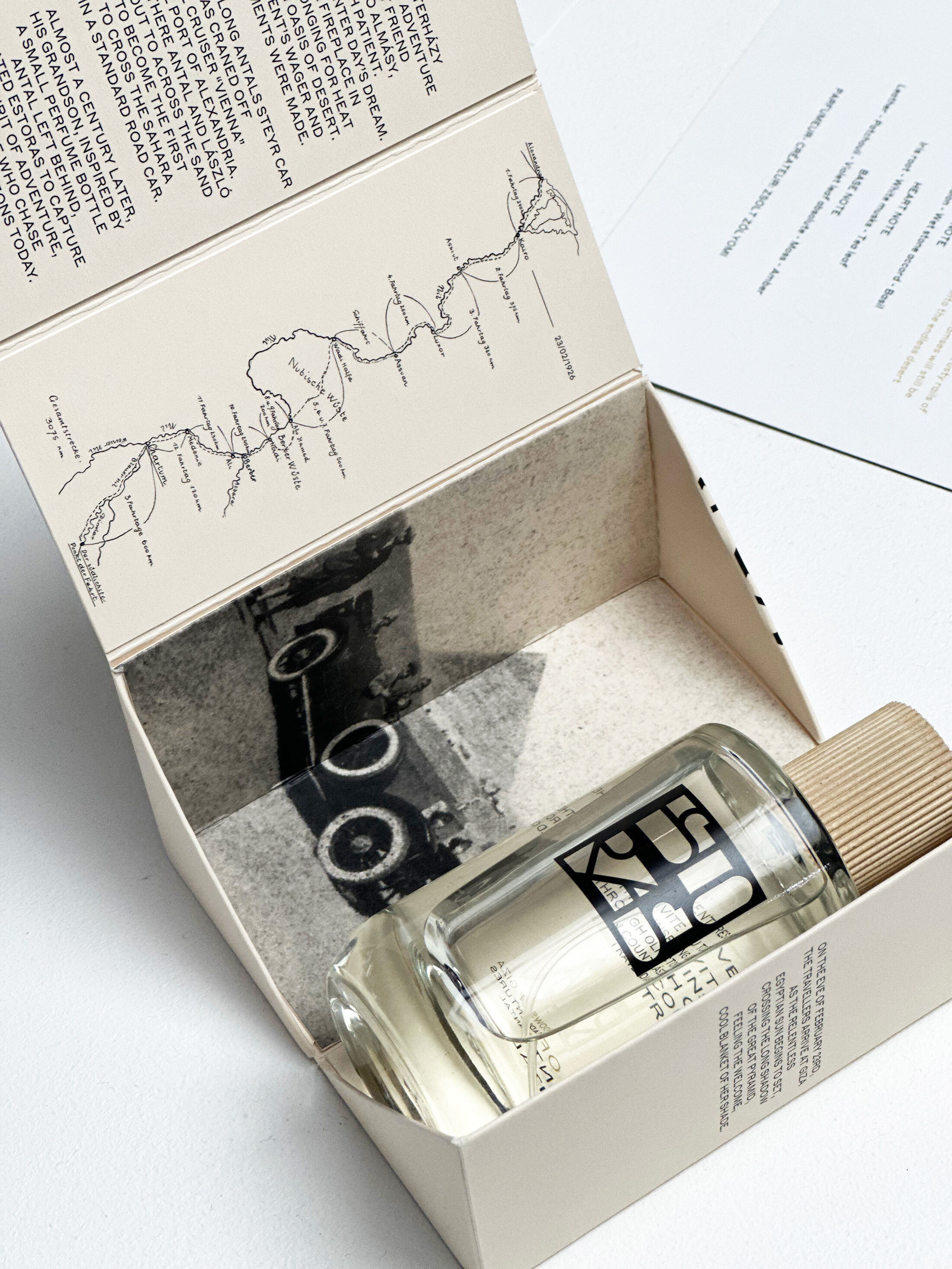 První, podpisová vůně značky, vydaná v roce 2022, se jmenovala Antal (jedno z dědečkových jmen) a vyprávěla o jeho pozoruhodné cestě napříč Saharou ve společnosti přítele, slavného maďarského hraběte László Almásyho. Ano, čtete správně. Přesně tento příběh vyprávěl v roce 1996 režisér Anthony Minghella ve filmu Anglický pacient, který adaptoval stejnojmenný román Michaela Ondaatjeho z roku 1992.