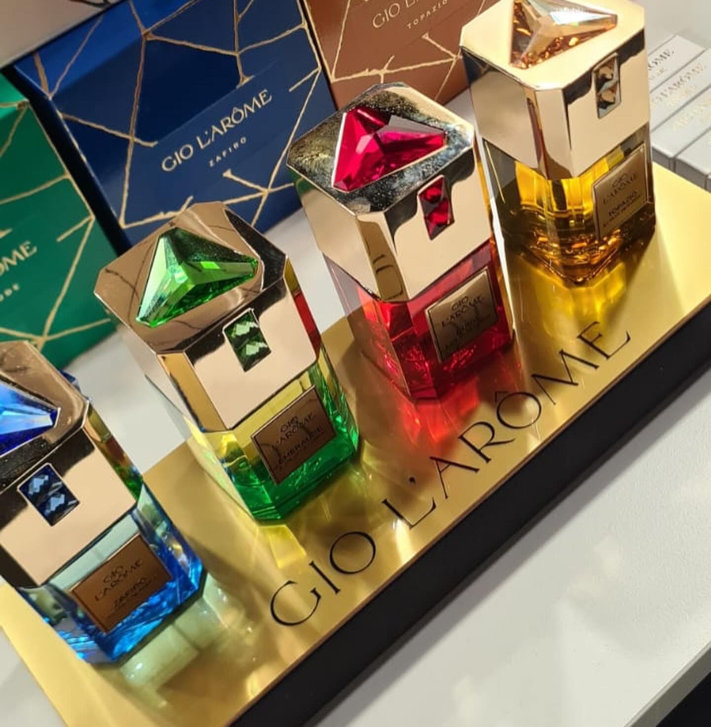 Značka Gio L'Arôme se poprvé představila na veletrhu Esxence 2024 se svou první kolekcí Eternal Halo of Love, která byla navržena kolem drahých kamenů a odráží víru a příběhy, které je obklopují. Vůně vytvořil Chris Maurice a jsou "založeny na energii a magii, kterou každý kámen disponuje." Obaly jsou inspirovány Gaudího použitím barev a japonským uměním Kintsugi, kdy se rozbitý porcelán opravuje zlatem.
