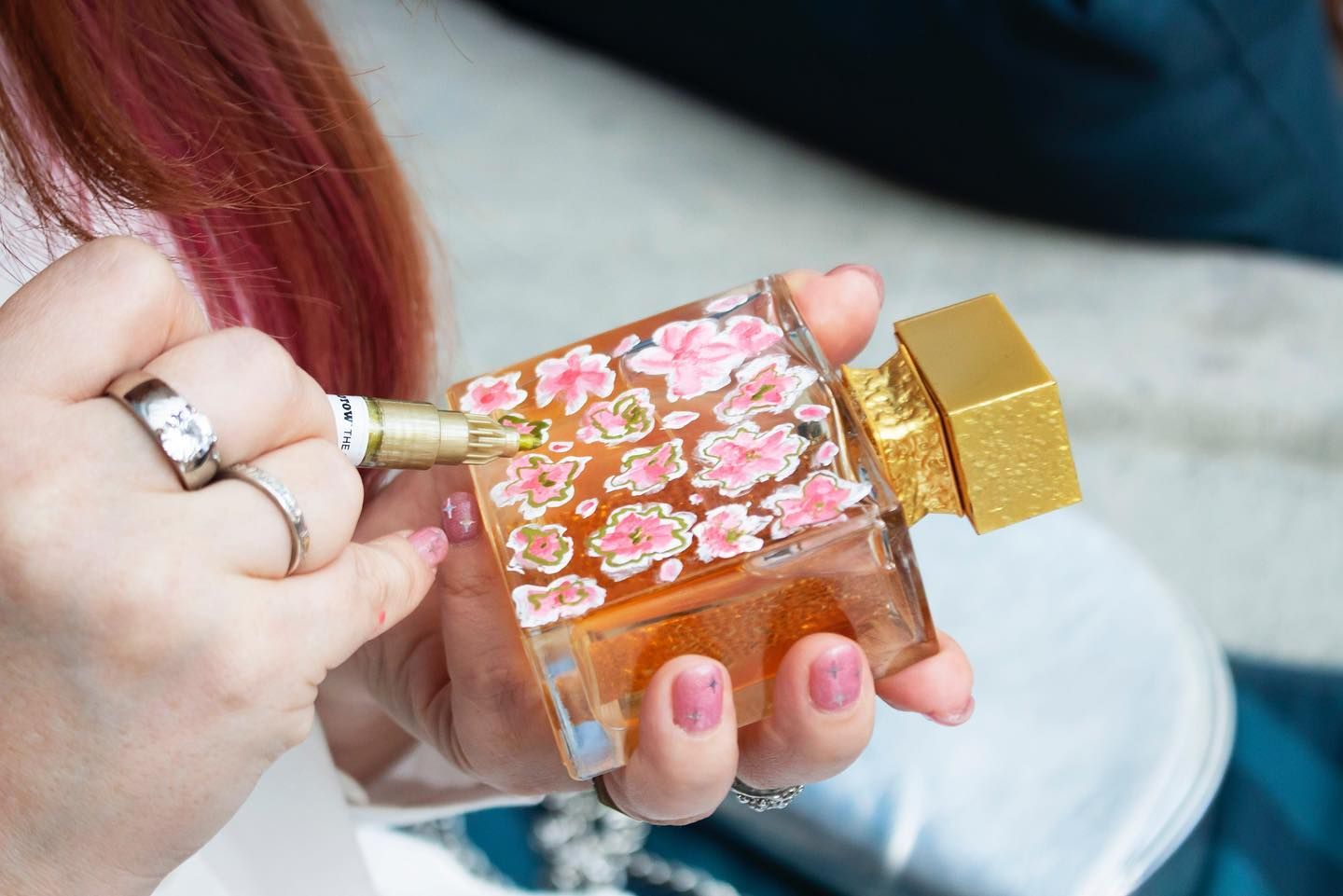 Jeden z workshopů spočíval v uměleckém tvoření malováním lahviček Maison Micallef pod vedením umělkyně Amandine M.