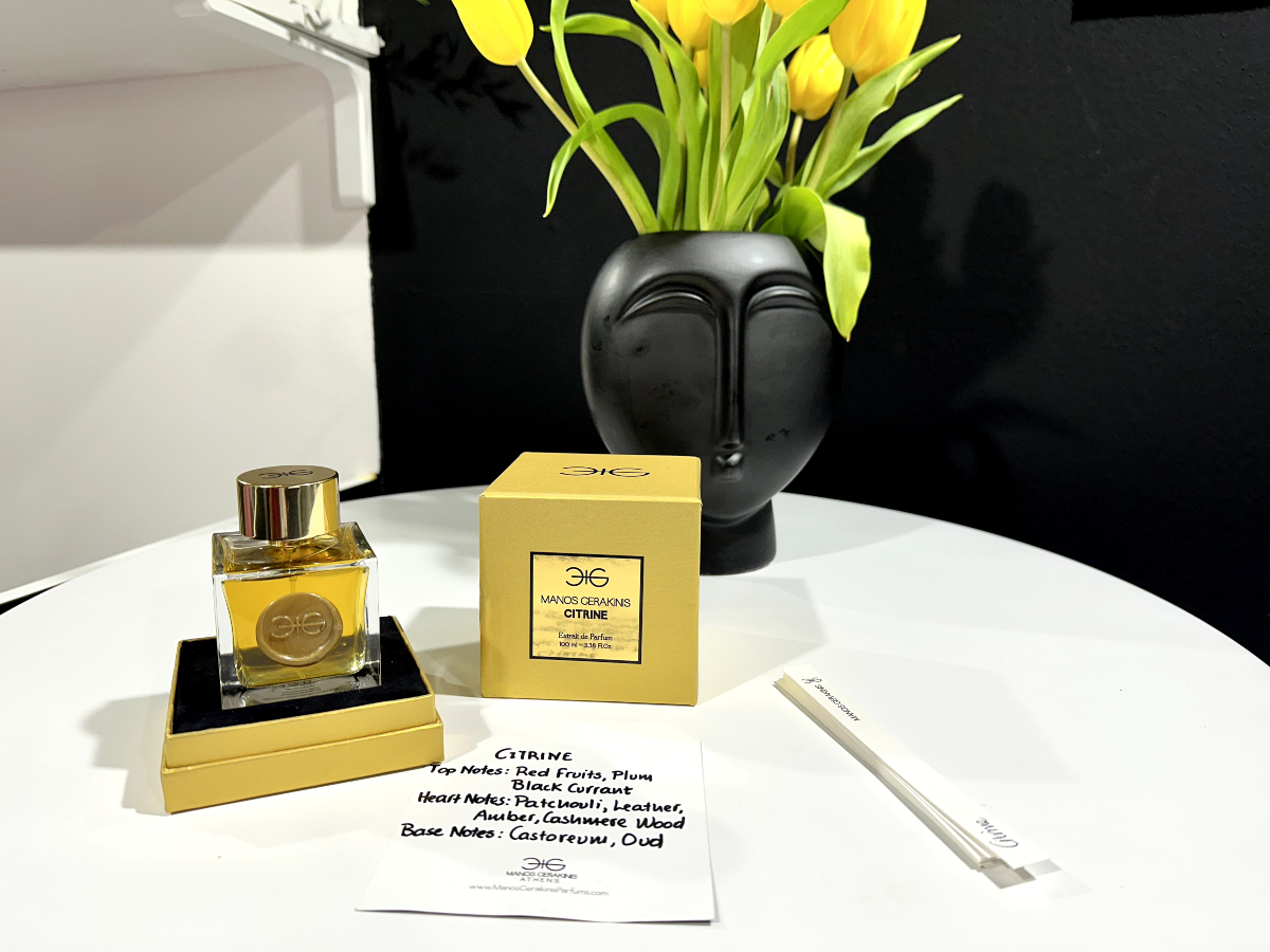 Každý rok bude vydáno dvacet pět kusů Citrine ve 100ml síle extrait de parfum. Vůně Manos Gerakinis nepoužívají složky živočišného původu, takže kastoreum v této vůni pochází ze syntetických zdrojů.
