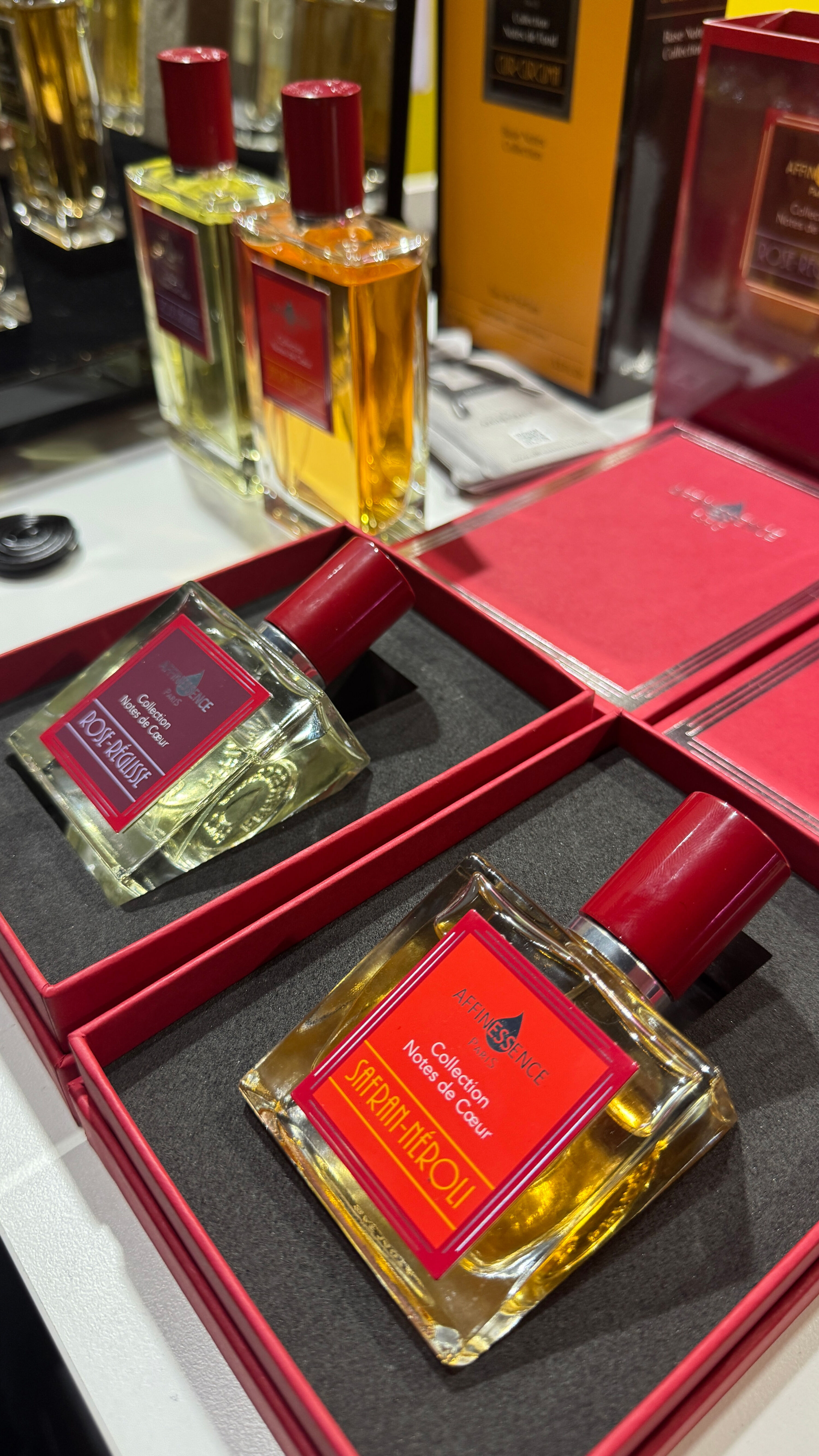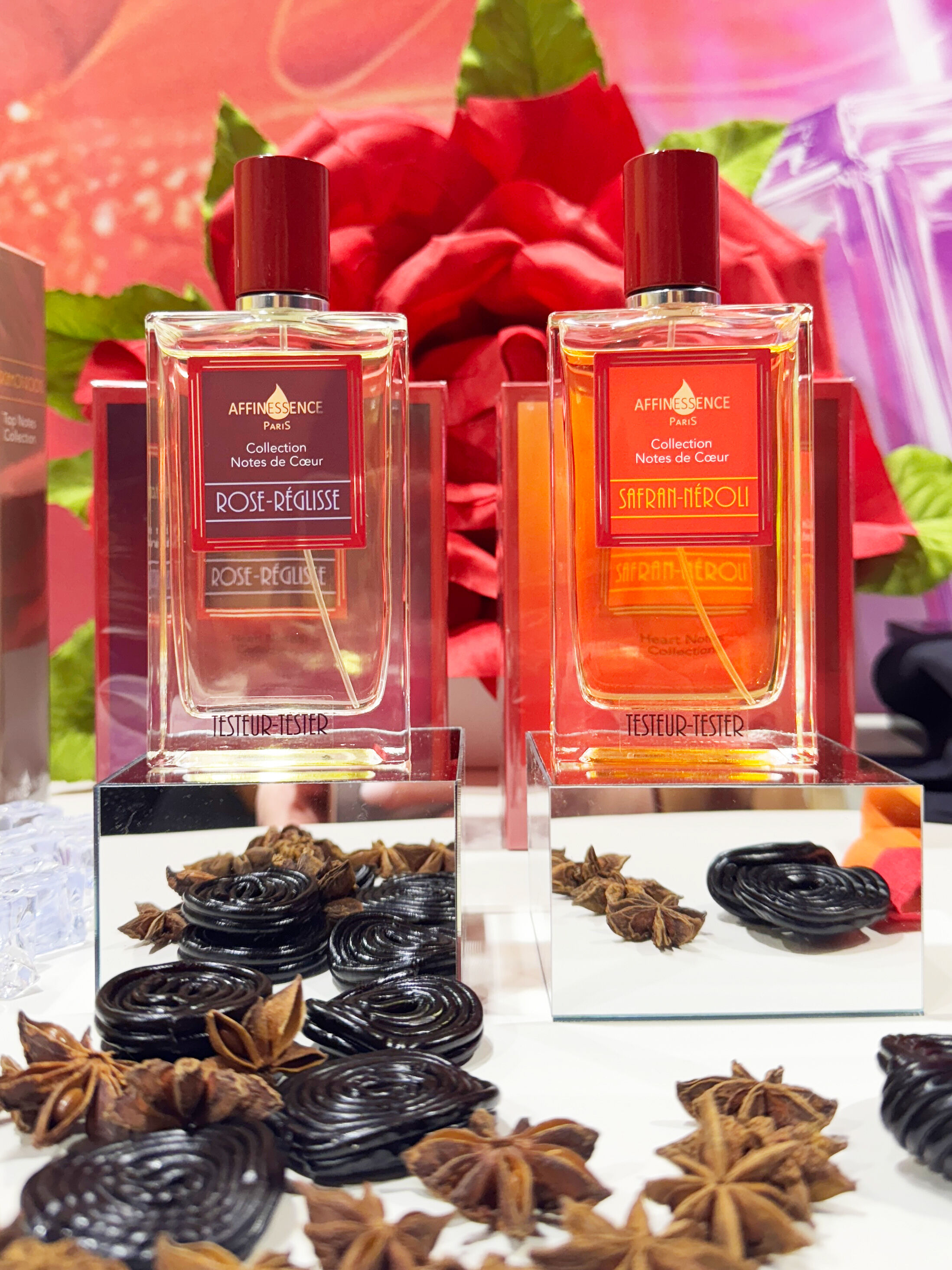 Affinessence představila publiku dva zářivé přírůstky do kolekce The Heart Notes, pro které zakladatelka značky Sophie Bruneau vybrala dva různé parfuméry. Rose-Reglisse, kompozice od Nathalie Lorson, je chladivá gurmánská vůně s tóny anýzu a fialky, srdcem je růže a akcenty tvoří tóny liči a lékořice. Luxusní Safran-Neroli, kterou vytvořila Margarita Carini, obohacuje dvě témata neroli a čaje o koření. Navzdory své stručné pyramidě jsou obě vůně skutečně luxusní.