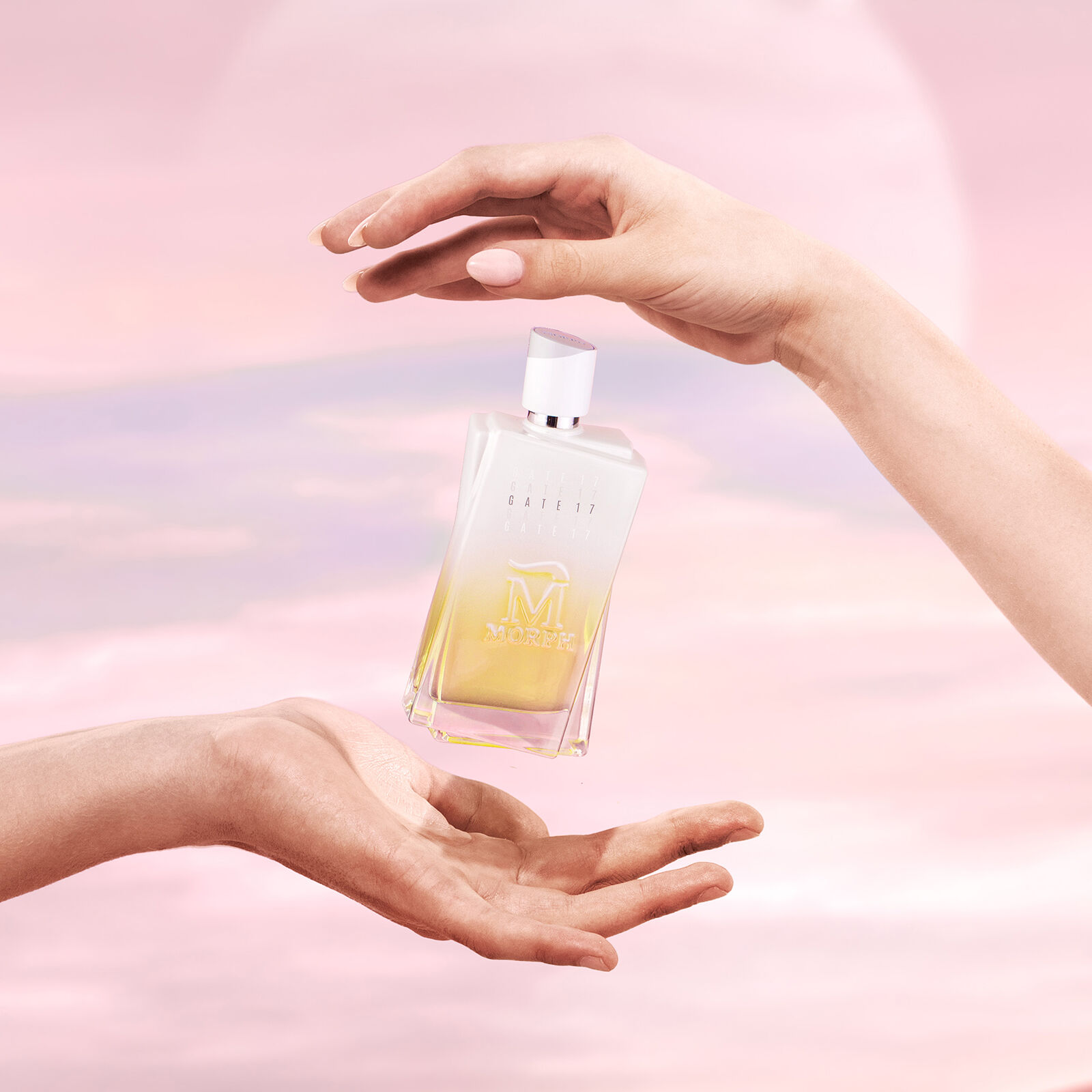 Podle tiskových materiálů Morph vznikl název „Gate 17“ díky náhodnému setkání na letišti – místě, které symbolizuje pohyb a nové příležitosti – kde se u brány 17 potkali parfumér a podnikatel.