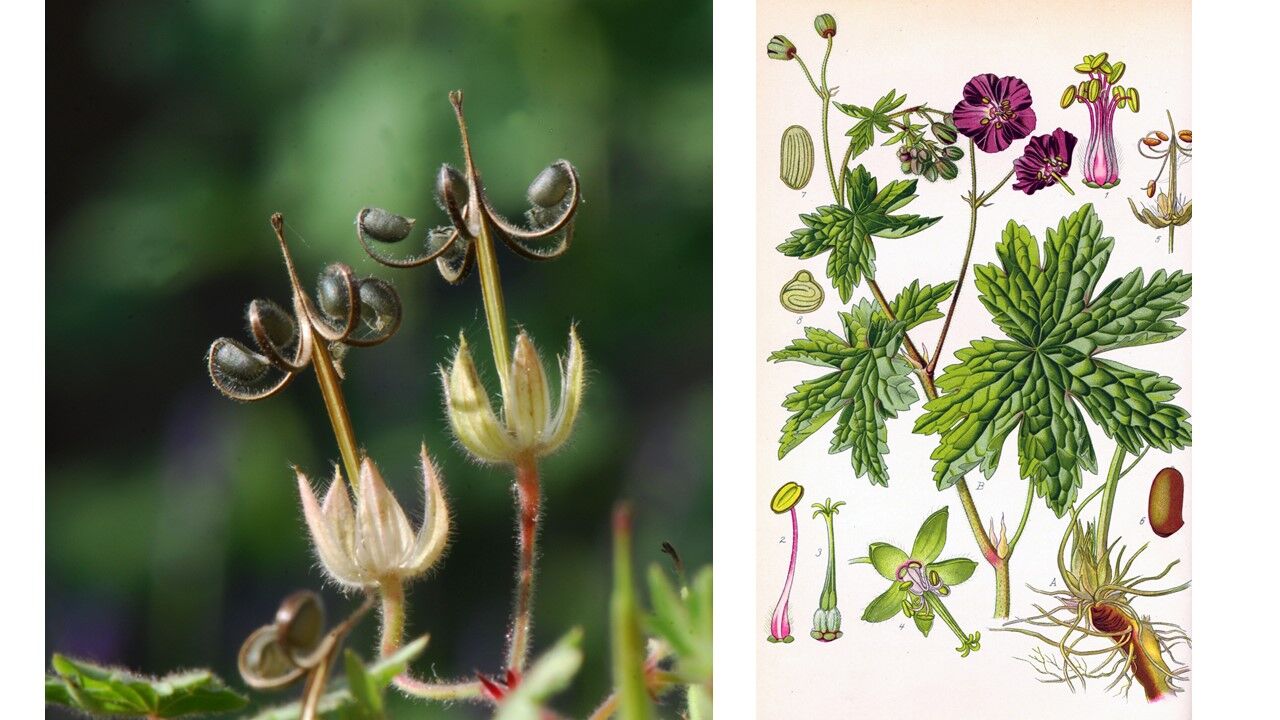 Zajímavé je, že plod geranie je důmyslná složená tobolka (schizokarp) s připojenými kališními lístky, která se po dozrání dramaticky otevírá zespodu.