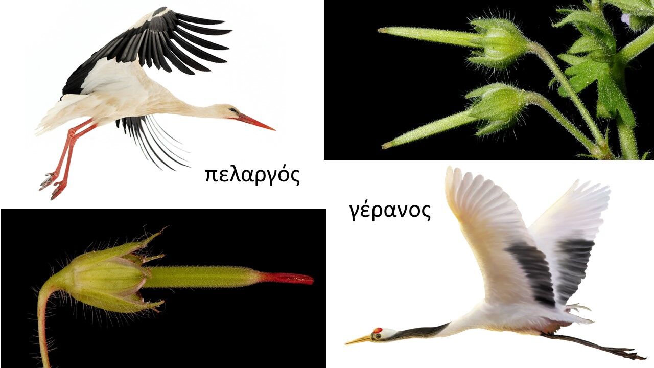 Jeden z anglických názvů gerania je cranesbill. V němčině se geranie nazývá Storchschnäbel, což znamená "čapí zobák". Právě odtud pochází zmatek v názvech těchto rostlin z ornitologie. "Gerania", které všichni známe z parapetů veřejných budov, jsou ve skutečnosti pelargonie – blízký, ale odlišný rod z čeledi Geraniaceae.