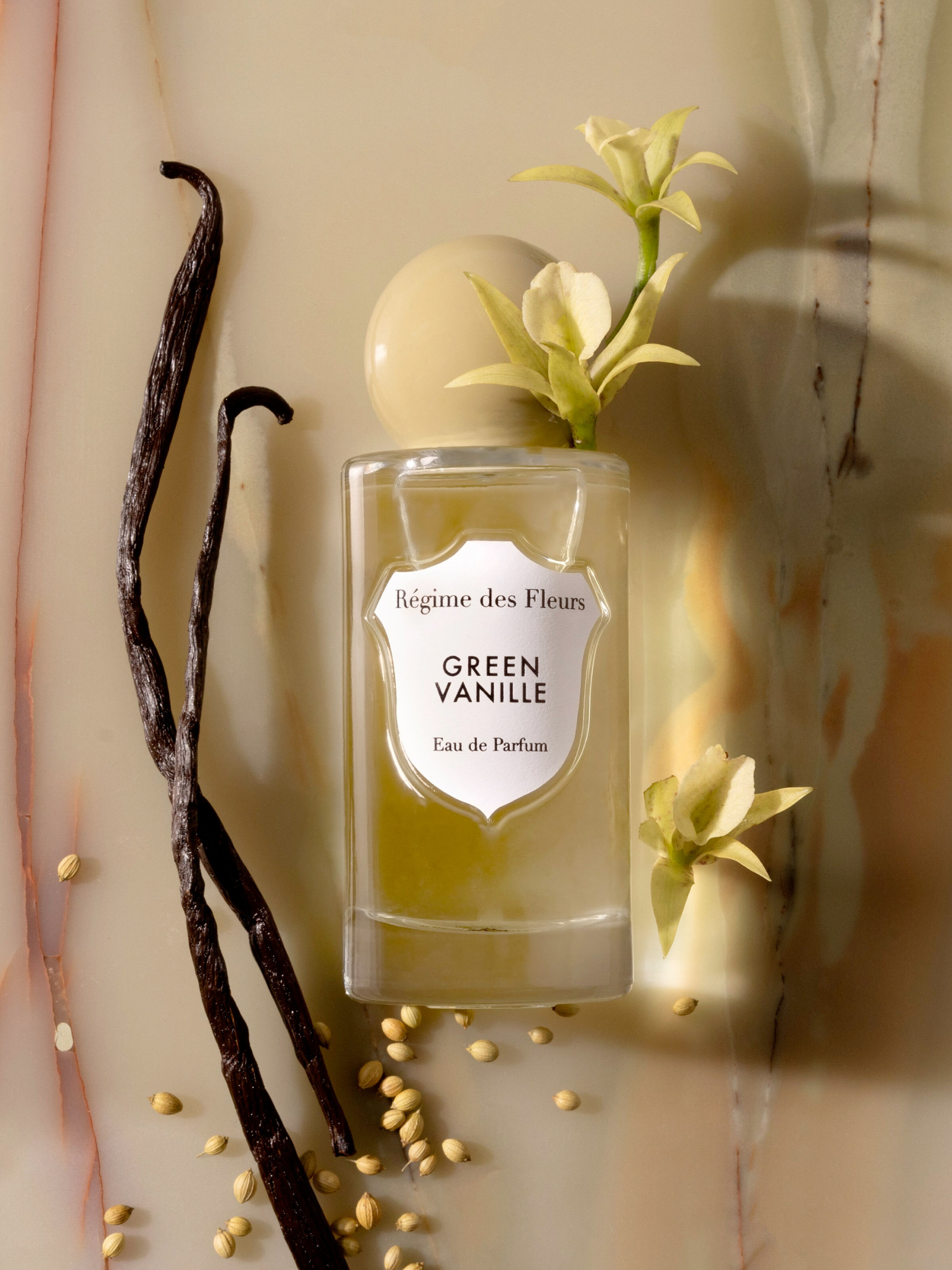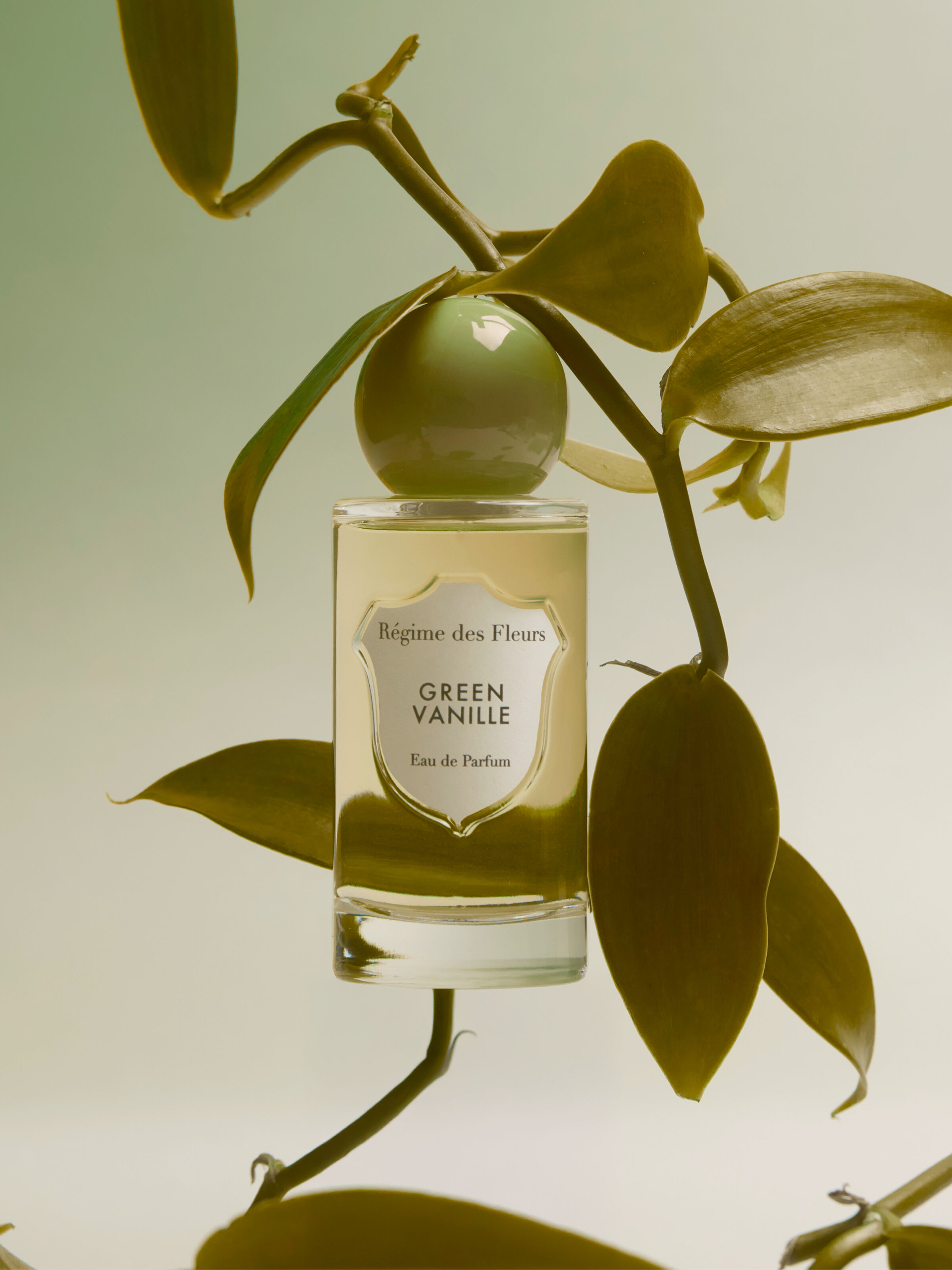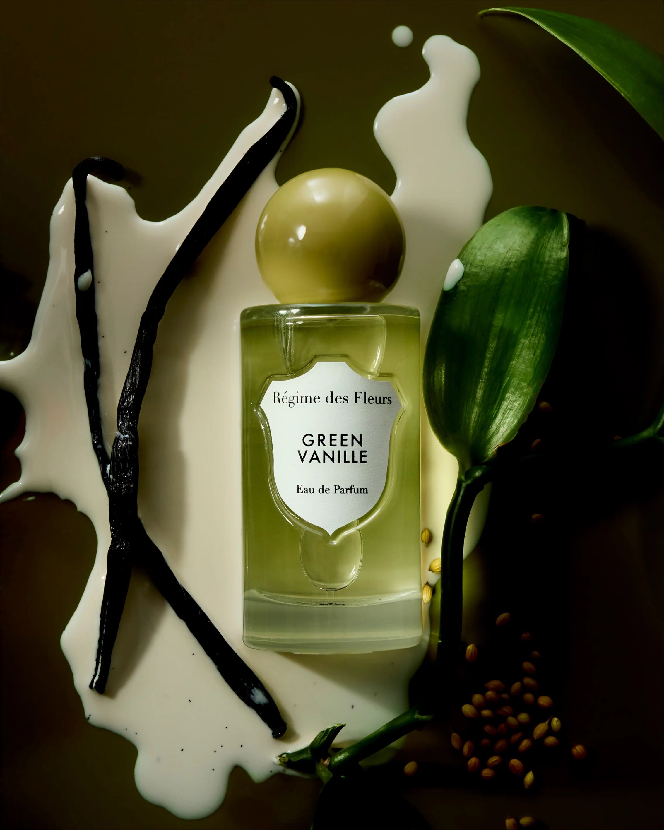 Régime des Fleurs aktualizoval vzhled své nové vůně Green Vanille z roku 2024. Vůně je vysvětlena jako netradiční, ale přirozená vanilková vůně.