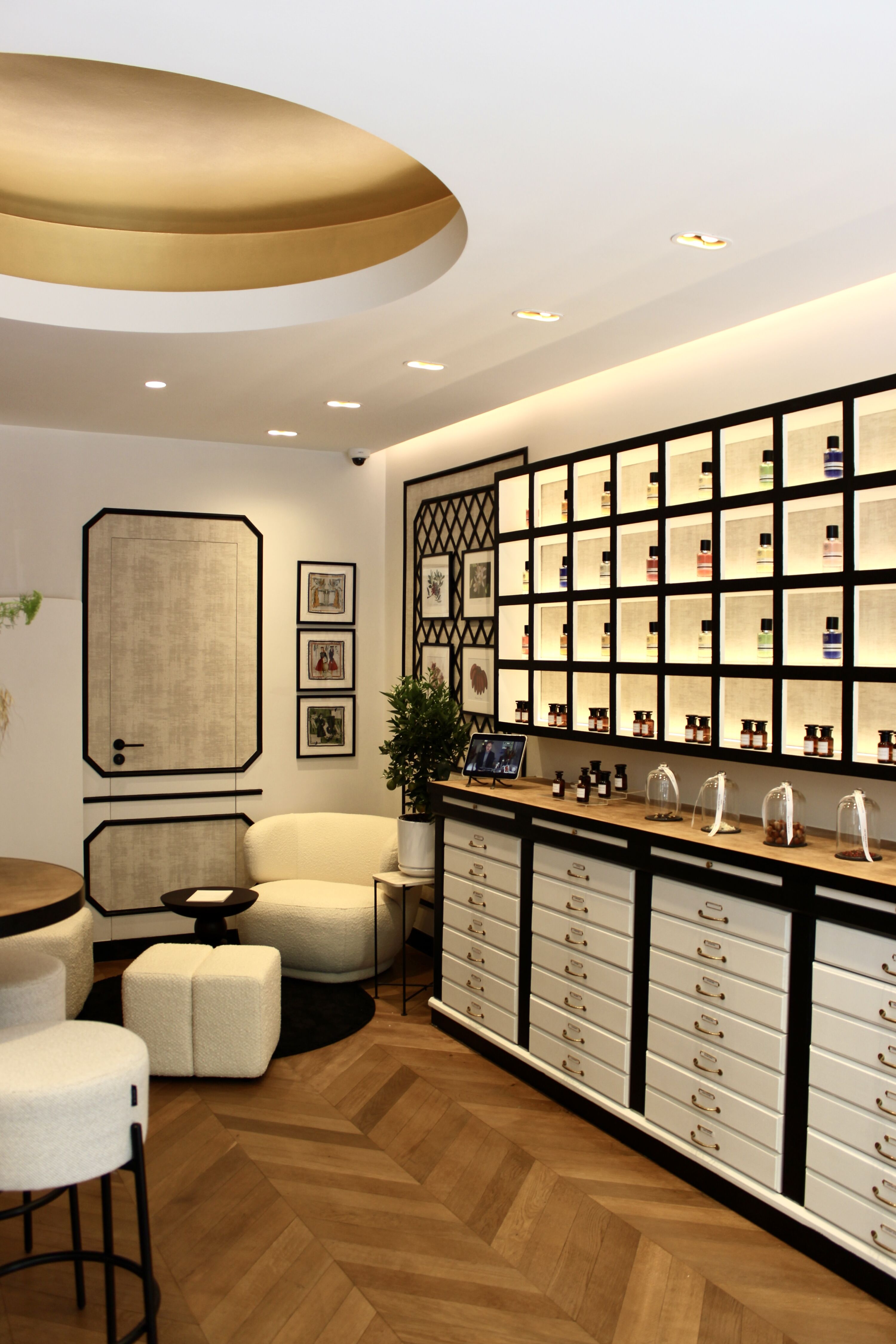 Butik je velkým letním překvapením, kterým nás značka obdarovala… Jak vysvětluje kreativní ředitelka Rania Naim: "Otevření pařížské adresy bylo sice v našich plánech do budoucna, ale v době Esxence, na konci loňského února, ještě nebylo nic konkrétního ani na spadnutí. Možnost usadit se v prvním patře této budovy, hned pod našimi kancelářemi, se naskytla až v dubnu. Všechno pak šlo velmi rychle." Ve skutečnosti uplynuly mezi představou Ranii Naim o prostoru – veškeré plány i design butiku vytvořila sama – a dokončením prací pouhé tři měsíce.