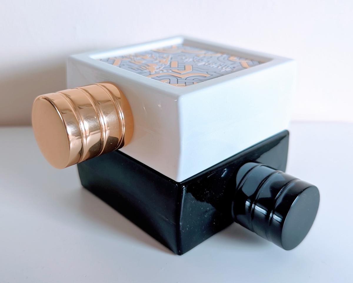 Lattafa Qaed Al Fursan (ta černá) jsem si vlastně pořídila poté, co na mě udělala dojem ta bílá, a navíc byla údajně unisex, takže jsem to riskla. Ale je to neúspěšný nákup naslepo. Pro mě to není unisex, je to dost výrazně mužsky profilovaná vůně. Ve skutečnosti je černá tak jasně pro muže a bílá tak jasně pro ženy, že si myslím, že nerozlišování je ze strany výrobce trochu neupřímné. Vím, že "bezpohlavní" je v módě, ale nejsem jediná, kdo zde vyjadřuje zklamání z nedostatečného nasměrování. Střední cesta tyhle dvě nejsou. Líbí se mi, ale tu černou bych si na sebe nevzala, alespoň ne samostatně. Její vrstvení s bílou však ubírá na svalnatosti a vytváří lehce řeznickou pina coladu.