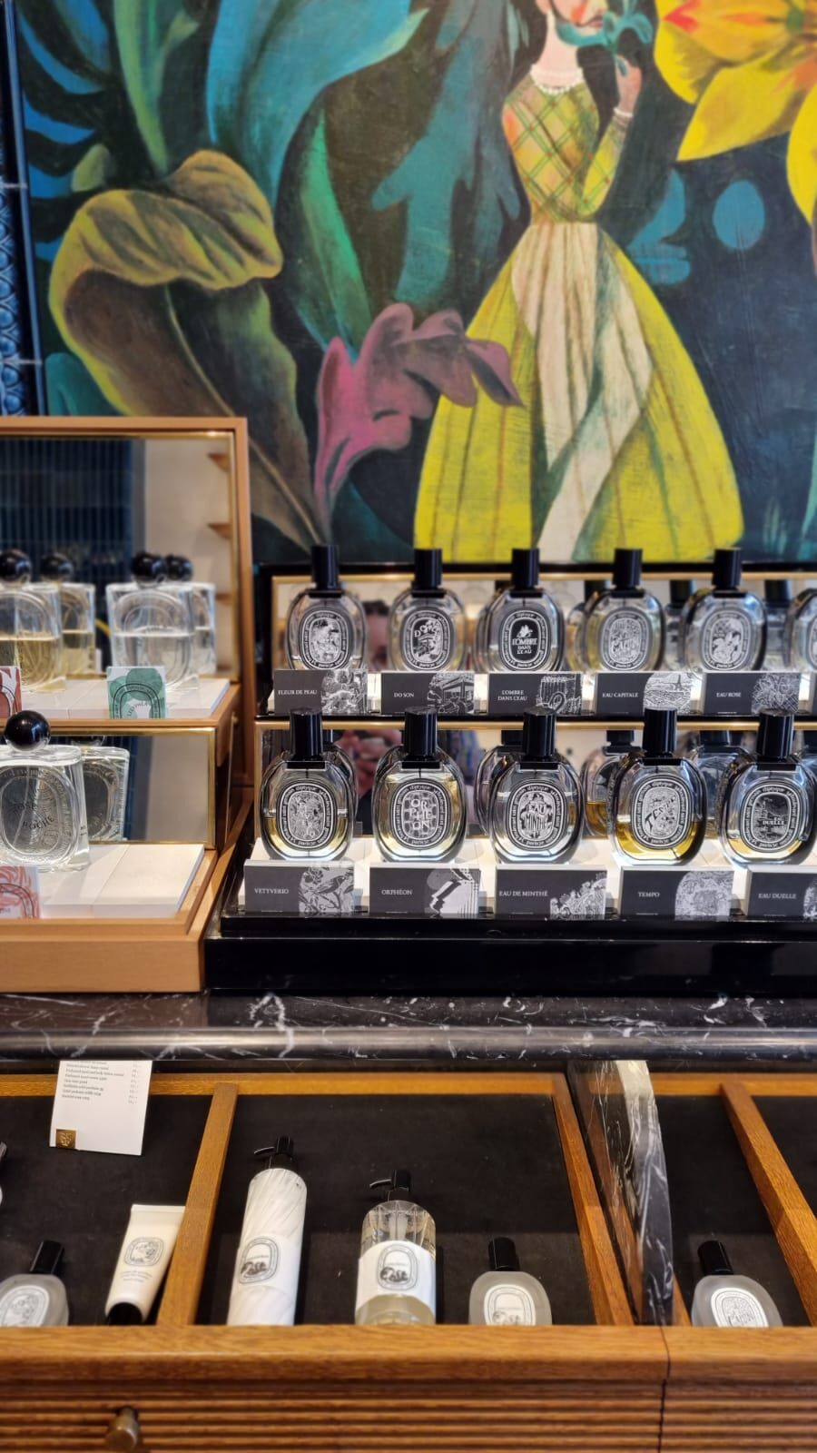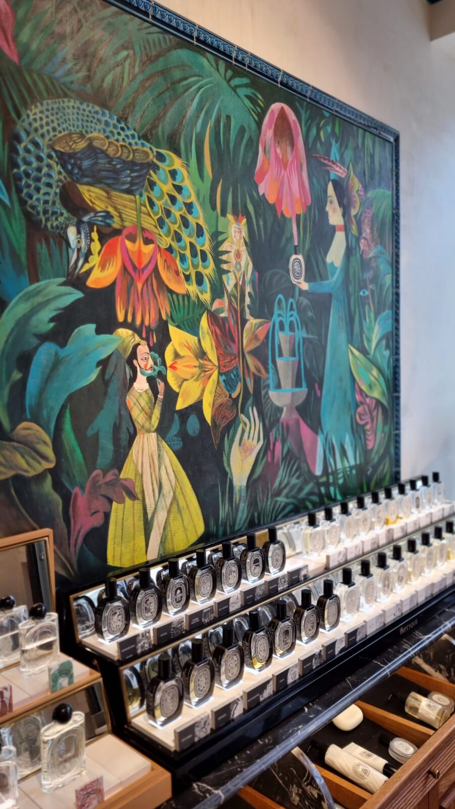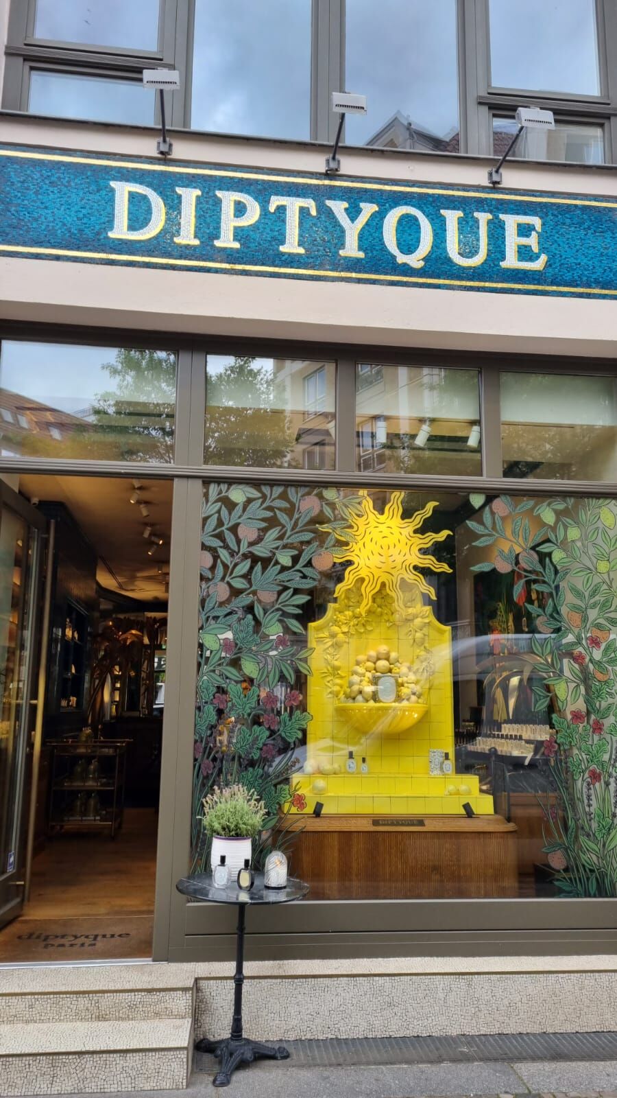 Mezi různými butikovými parfumeriemi vyniká Diptyque Boutique Mitte v Berlíně jako ztělesnění vytříbeného vkusu a tichého luxusu. Modré dlaždice a zlaté palmy, které prostor zdobí, jsou naprosto jedinečné.