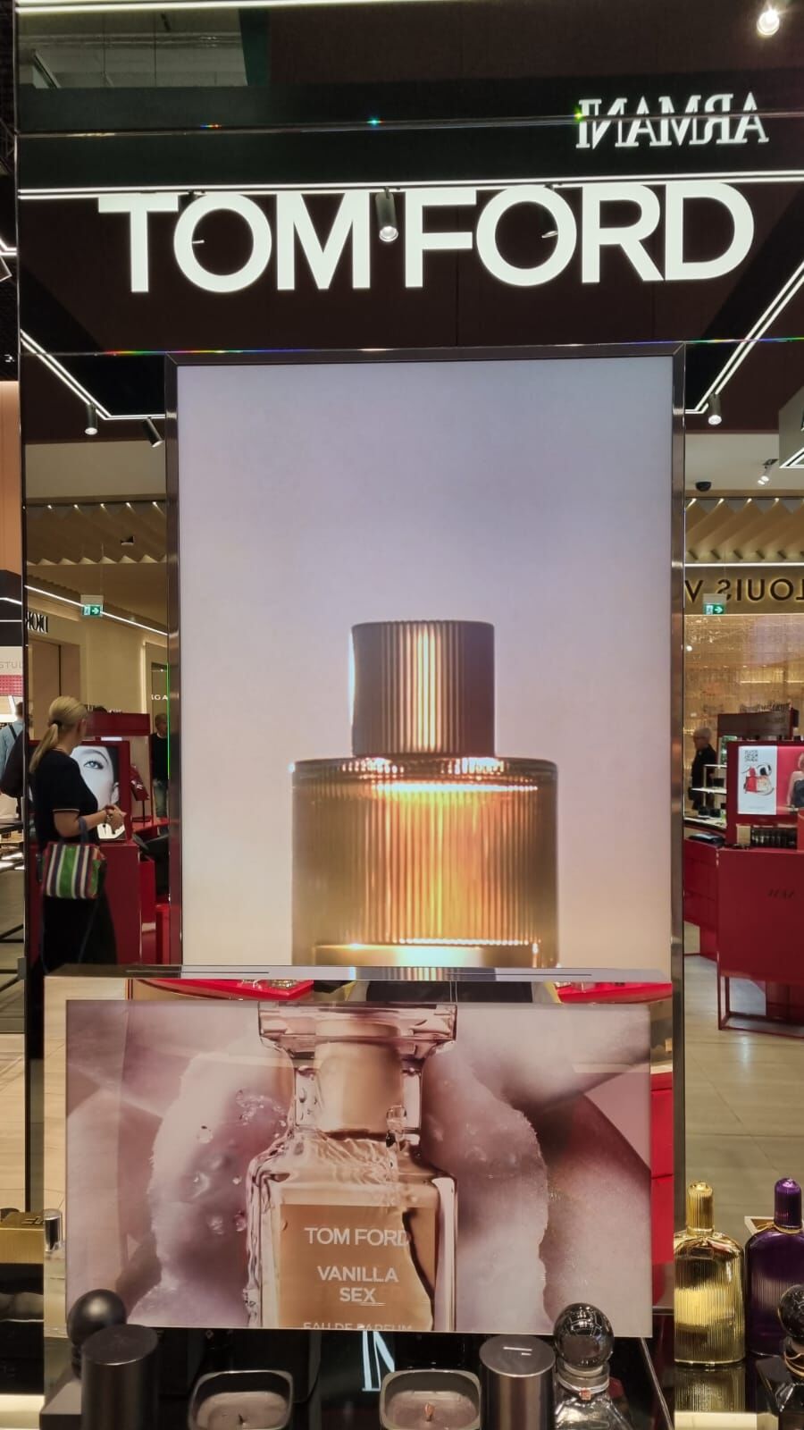 Samozřejmě jsem navštívila i Tom Ford. K Tomu Fordovi chodí prostě všichni. Příjemný personál mi prozradil, že mezi jejich nejprodávanější vůně patří Oud Wood, Lost Cherry, Tobacco Vanille, Fucking Fabulous a Soleil Blanc, která je ideální na léto.