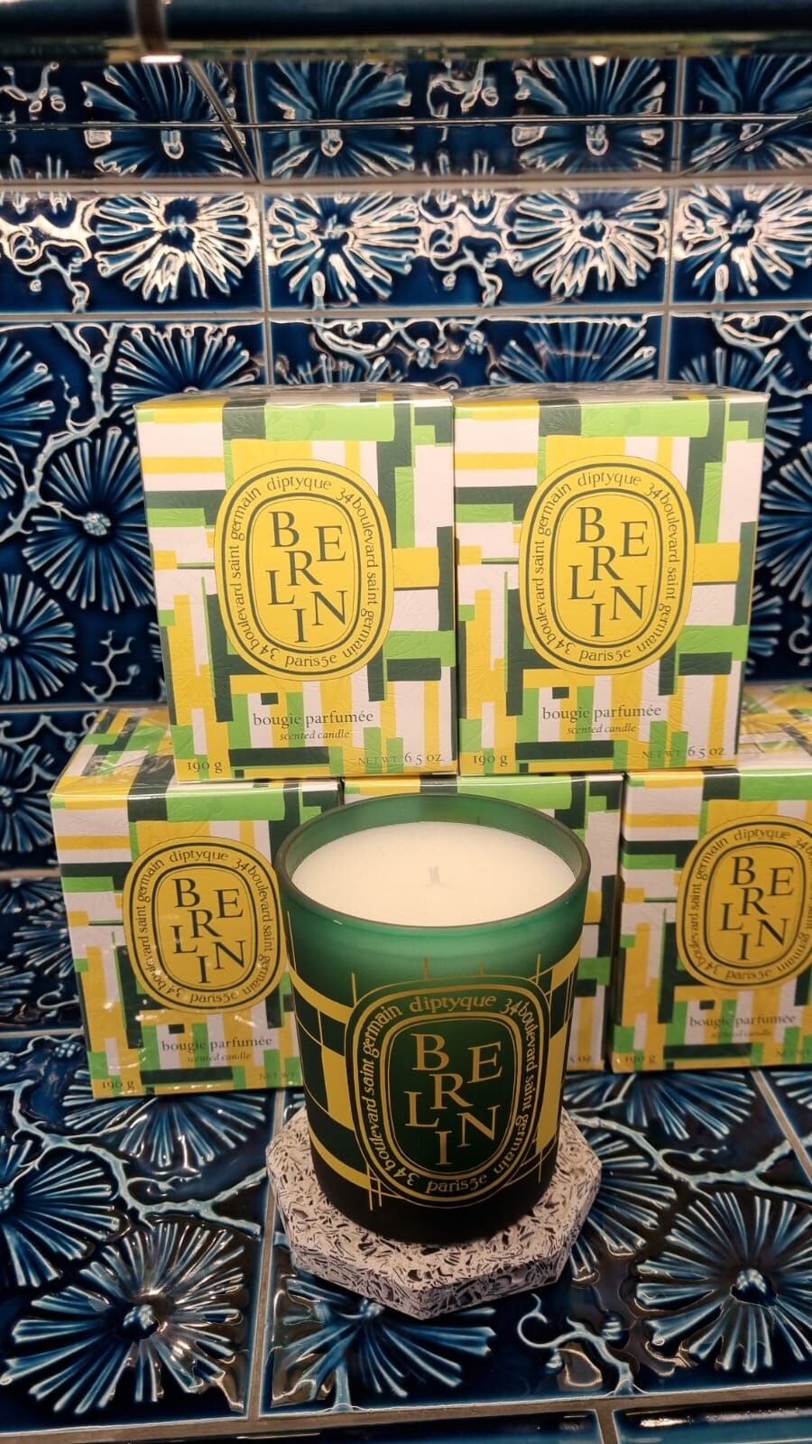 Také jsem se seznámila s vůní Berlína v podobě vonné svíčky. Diptyque vytváří vonné svíčky věnované různým městům; poslední novinka byla letos v dubnu a byla zasvěcena Milánu – kombinace bergamotu, růží a pačuli.