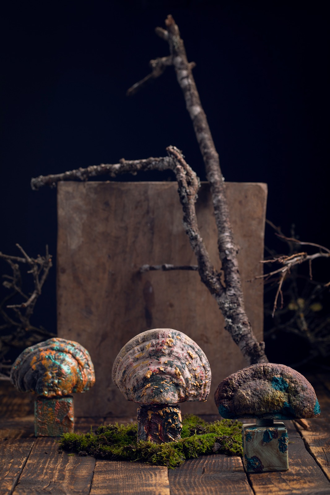 Každá láhev z kolekce Mushroom je jedinečným kusem a každý uzávěr je vyroben z lesních dřevokazných hub, které se před použitím nechávají asi půl roku sušit. Houbová kolekce se vyrábí výhradně na zakázku; konečný zákazník si může vybrat barvy, které budou použity v designu, a vůni láhve. Každá krabička je vyrobena ze dřeva, ručně malovaná, má kožený řemínek, dřevěnou tabulku s vyrytým jménem zákazníka a kožený kryt, který chrání lahvičku a víčko. Tvůrce sám sbírá všechny houby ze stromů v lese při svých procházkách přírodou.