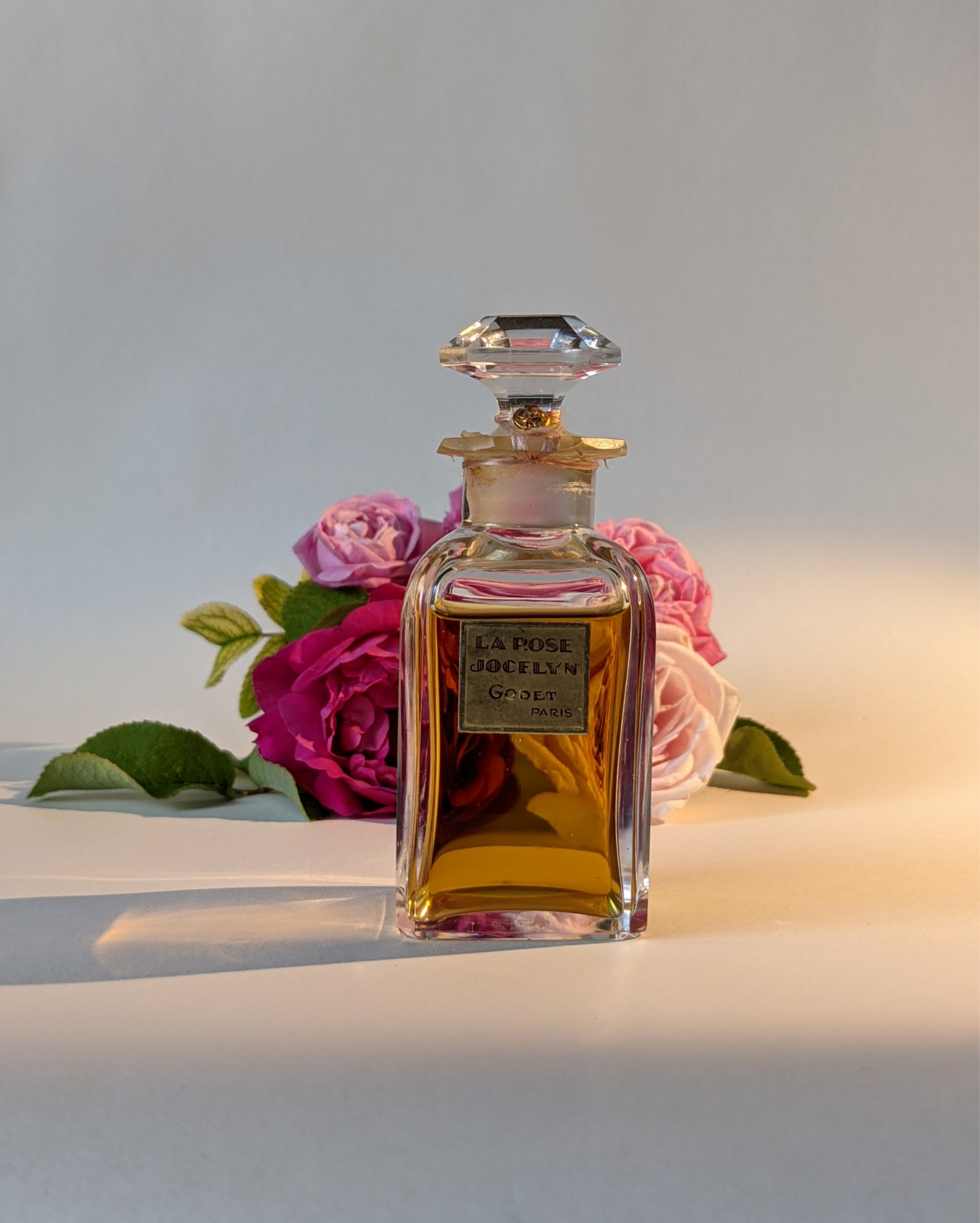 Název La Rose Jocelyn připomíná nejslavnější parfémovou růži počátku 20. století – La Rose Jacqueminot Françoise Cotyho. Růže byla mezi parfuméry dlouho tak oblíbeným tématem, že koncem 19. století se jen málokdo odvážil pojmenovat své růžové parfémy jednoduše "Rose" a místo toho přidal přídavné jméno. Vlastní jméno, odlišné od názvu parfuméra nebo značky, se přidávalo zcela výjimečně – Coty svou růžovou vůni chytře pojmenoval podle slavné odrůdy růží (věnované zase generálu Jacqueminotovi). Ale koho nebo co měl Julien-Joseph Godet na mysli? Přikláním se k verzi, kterou navrhla čtenářka Fragrantica jménem Galia: La Rose Jocelyn mohla být inspirována operou Jocelyn , kterou napsal francouzský romantický skladatel Benjamin Godard na motivy stejnojmenné Lamartinovy básně, nebo přímo básní samotnou.
