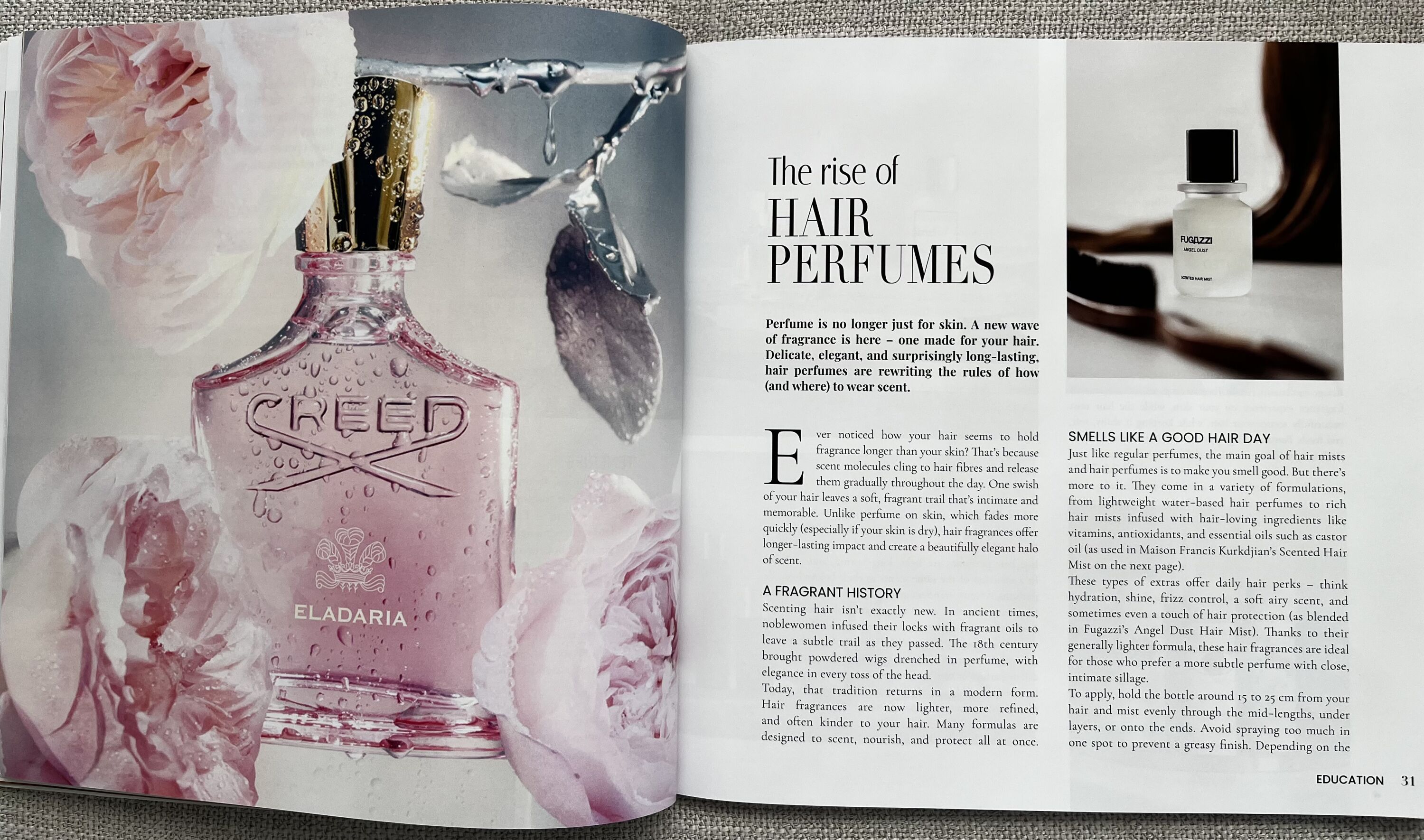 ...a nádherný článek na téma „Vzestup parfémů na vlasy“, který mi byl obzvlášť blízký, protože jsem právě napsala svůj vlastní článek o jejich rostoucí popularitě.
