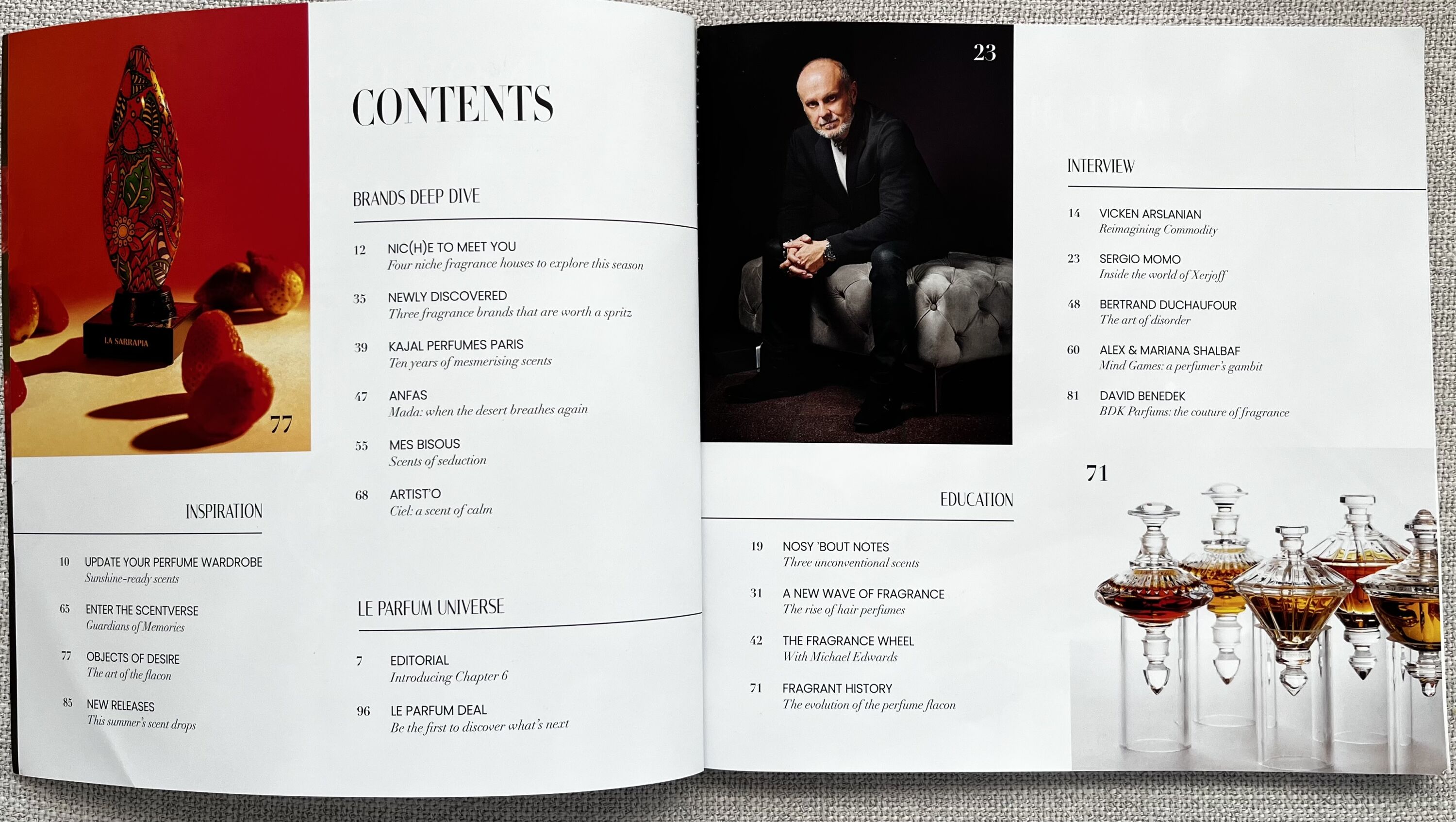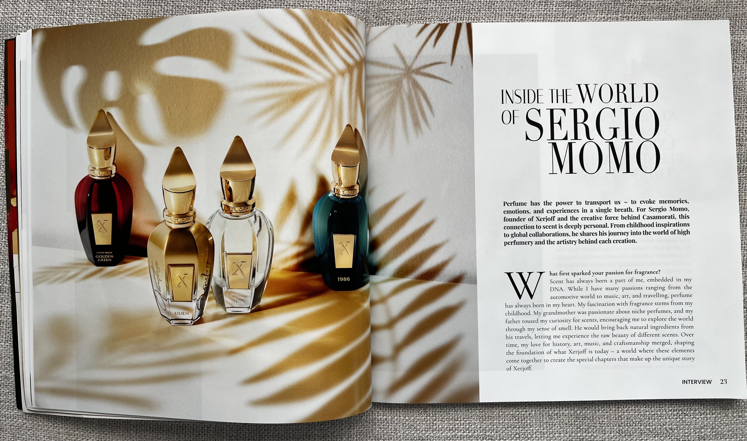 Mezi další zajímavosti patří rozhovor se Sergiem Momem, zakladatelem Xerjoff (součástí boxu je i sprejový vzorek Uden Overdose)...