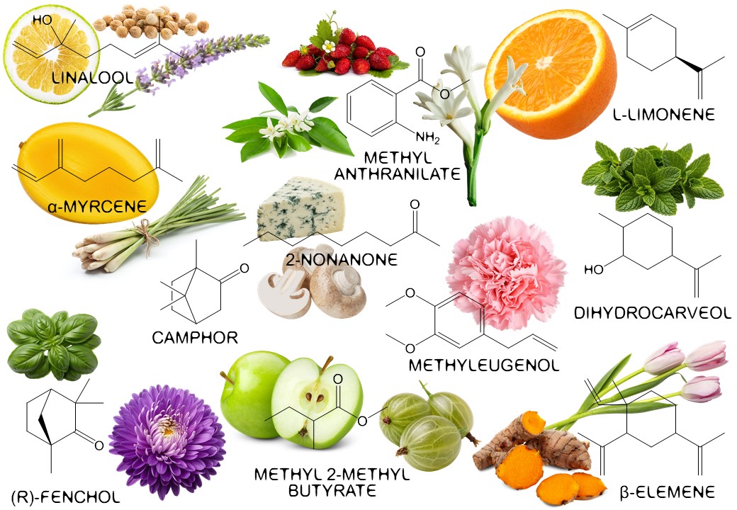 Pojďme si říct pár slov o struktuře přirozené vůně magnólie. Jako obvykle se skládá převážně z terpenů a jejich derivátů. Dominantní složkou je všudypřítomný linalool, který dodává magnólii její svěží, lehce citrusový hlavní charakter. Měli bychom zmínit také relativně neobvyklý α-myrcen, který se v přírodě vyskytuje mnohem méně často než jeho β-izomer. Čistý L-limonen, navzdory tomu, co by se dalo očekávat, voní méně jako pomeranč nebo citron a spíše jako terpentýn, snad jen s mírnou podobností limetce. Dihydrokarveol má mátově-bylinné aroma, zatímco (R)-fenchol připomíná bazalku a některé zástupce z čeledi hvězdnicovitých. Parfuméři často poznamenávají, že kapka heřmánkového oleje může pomoci k vytvoření realistického profilu magnólie. β-Elemen přispívá lehce pryskyřičným a balzamikovým aspektem, spolu s kořeněnou nuancí připomínající kurkumu a kořeněně-květinovým tónem, který může evokovat tulipány. Z těžších molekul můžeme zmínit také karyofylen a germakren D.