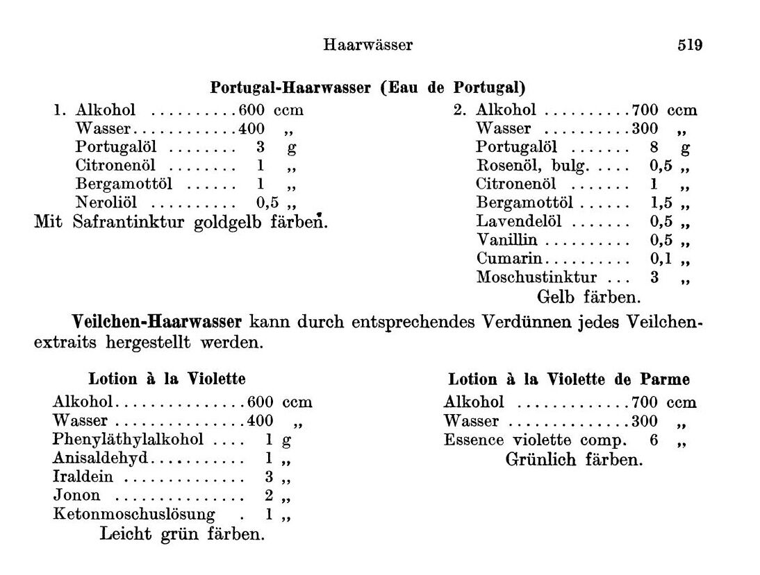 Je však velmi pravděpodobné, že "Portugal" v Proustově románu odkazoval na oblíbené tonikum na vlasy, jehož součástí bylo barvivo – není divu, že si kníže koupil Portugal od svého holiče. Recept na takové barvicí tonikum uvádí Fred Winter ve své slavné knize HANDBUCH DER GESAMTEN PARFUMERlE UND KOSMETIK. To však nezapře citrusovou vůni Portugalu.
