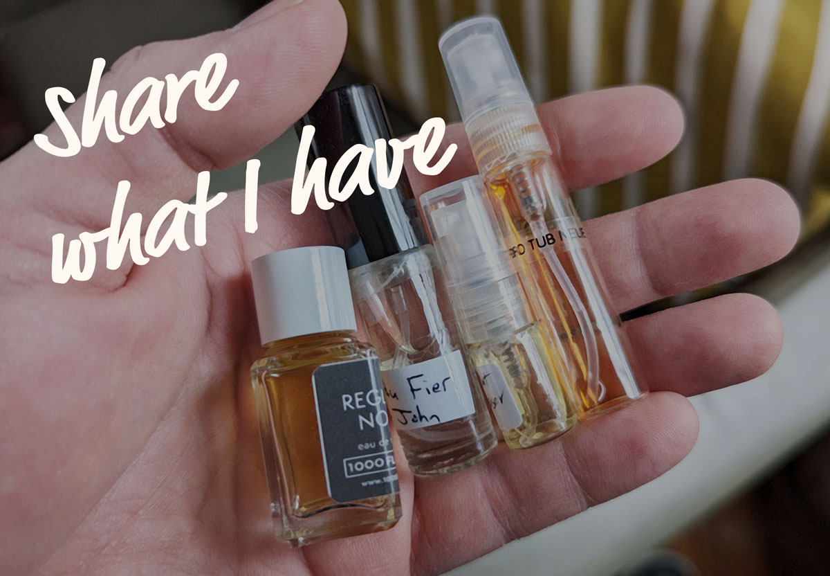 Něco, co mi dělalo a dělá radost, je sdílení toho, co mám. Mnozí z nás mají ve skříňkách spoustu parfémů, více než dost na delší nošení, takže odstřikovat 5 ml sem a 10 ml tam je opravdu radost. Umožňuje nám to podělit se o bohatství mezi přáteli, a dokonce i mezi cizími lidmi a podělit se s ostatními o své skvělé zážitky. Také se tak dostane ke slovu hvězdná vůně, kterou jste vyzkoušeli - taková, kterou opravdu chcete, aby ostatní pochopili a poskytli k ní zpětnou vazbu. Sdílení vůní vytváří konverzaci, dobrou vůli a podporuje další sdílení. Tímto způsobem jsem navázal několik skvělých přátelství a také to prohloubilo mé porozumění parfémům. Mnoho lidí se se mnou také podělilo o vzorky a byl to vynikající způsob, jak rozšířit své olfaktivní zkušenosti, aniž bych příliš zatížil rozpočet. Stává se to výhodné pro všechny. Je to také skvělý způsob, jak zahájit jarní úklid ve skříňkách s parfémy.