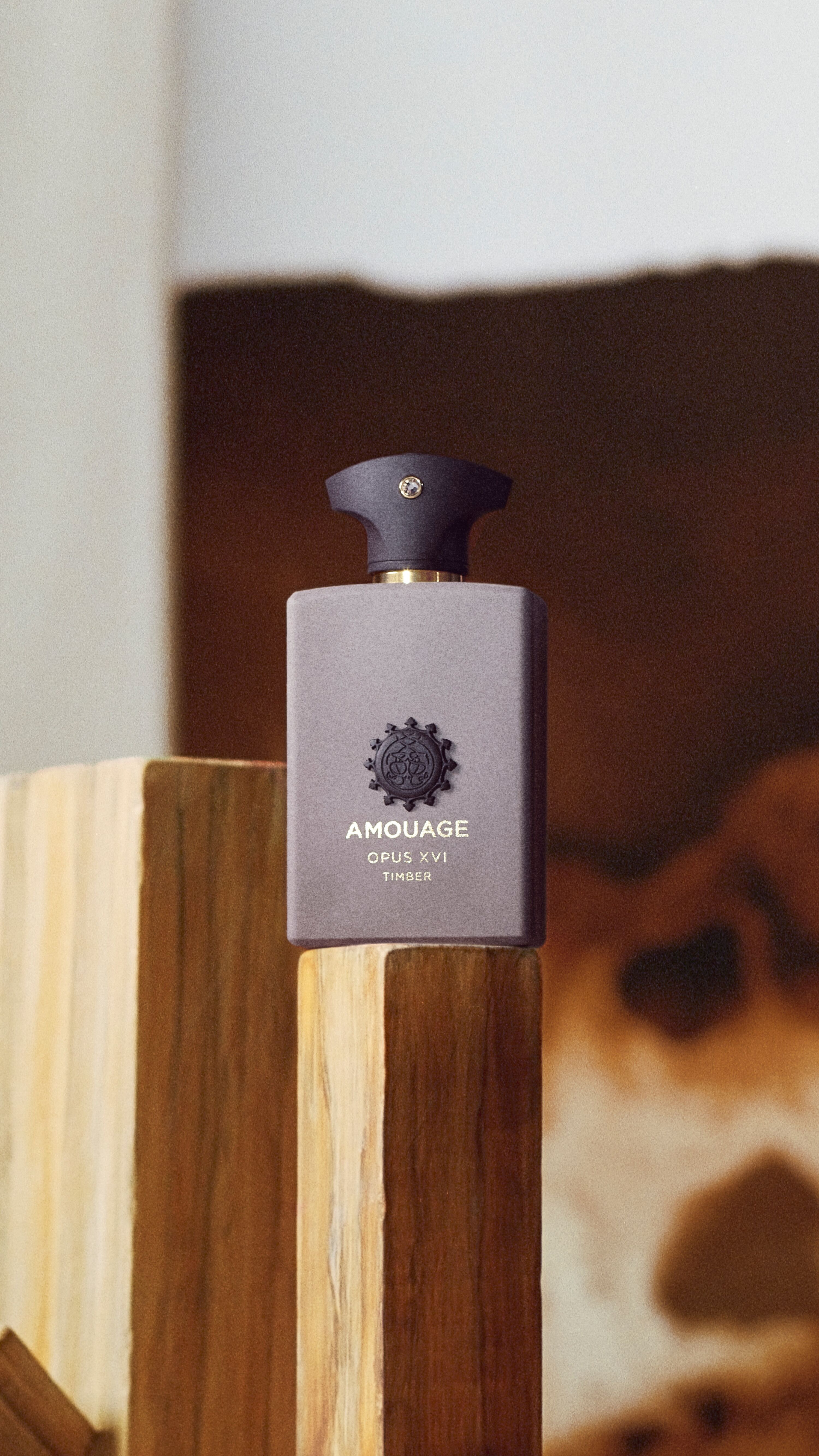 Po létě Amouage představila další kapitolu Library kolekce. Opus XVI Timber, ultra-dřevitá kompozice parfuméra Alexise Grugeona (Givaudan), vzdává hold odolnosti a síle přírody. Toto nové dílo čerpá inspiraci z majestátnosti kalifornských obřích sekvojí a vzácnosti ománských kadidlovníků (stromů rodu Boswellia).