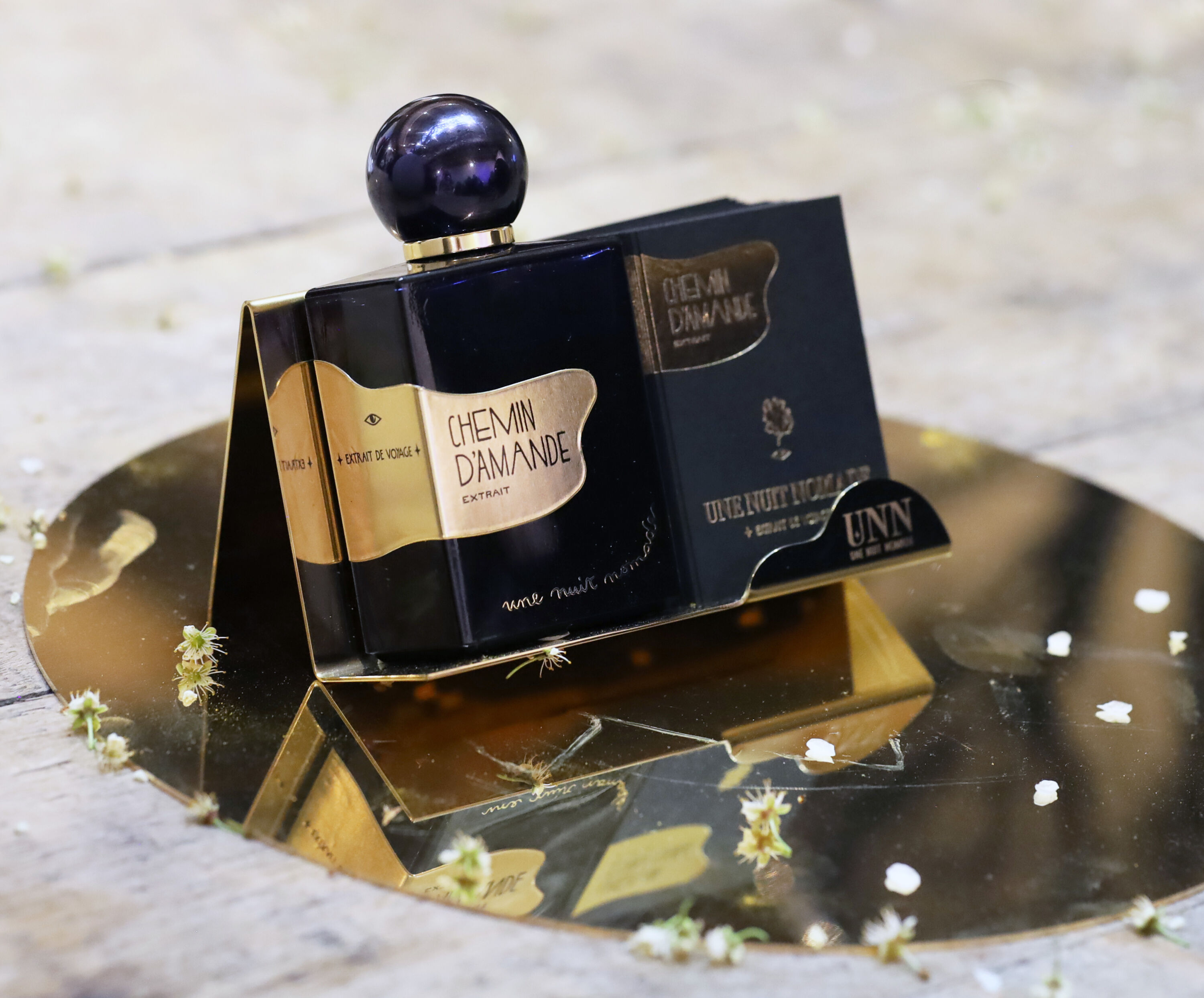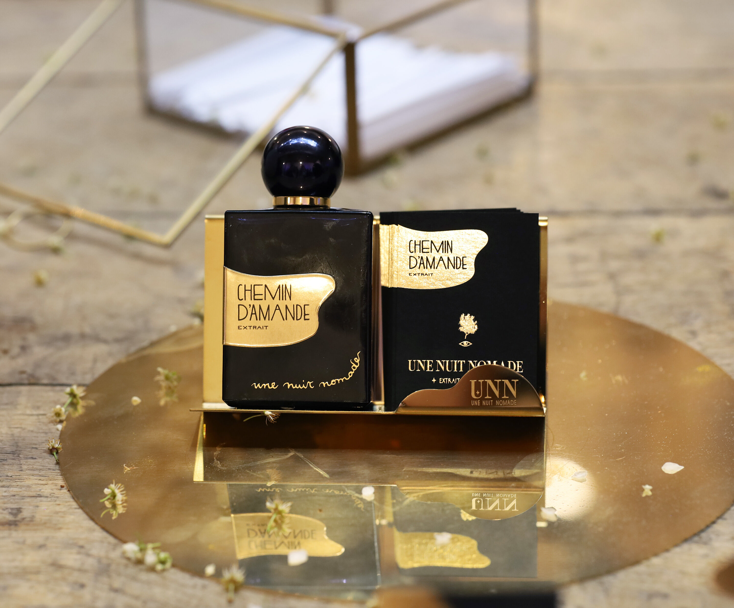 Une Nuit Nomade přidala do své kolekce Legends název Chemin D'Amande (Mandlová stezka). Jedná se o romantické a chytré uvedení oblíbeného tématu třešní a mandlí do nóbl řady. Extraits de parfum Legends byly představeny na podzim roku 2024 a nyní čítají čtyři vůně, všechny vytvořené Jérômem Di Marinem.