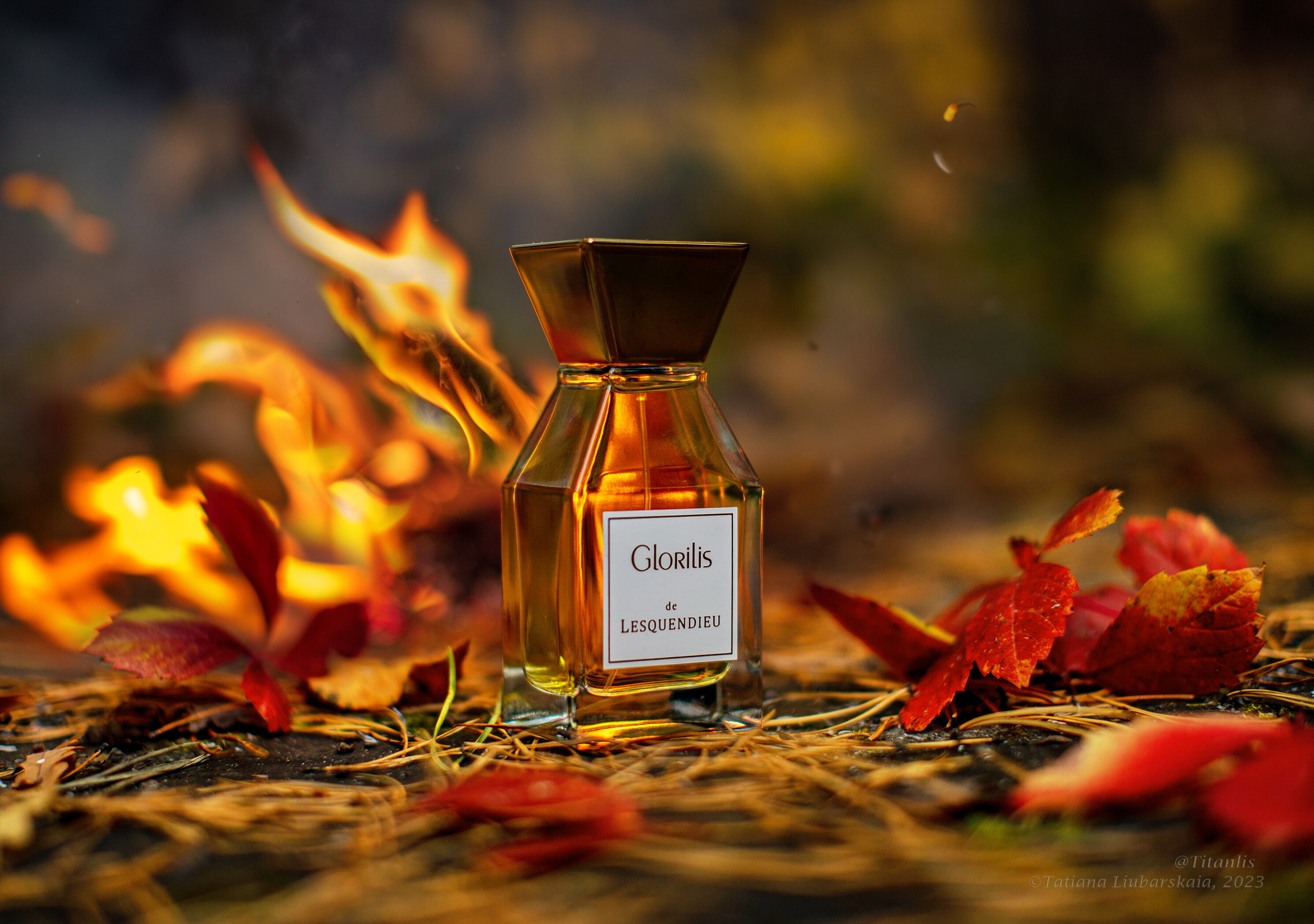 Glorilis Lesquendieu je vůně ve všech smyslech – oheň! Planoucí kadidlo, ohnivé koření, hořící pepř, šarlatový hřebíček – všechny odstíny plamene vás zahřejí v chladných dnech.