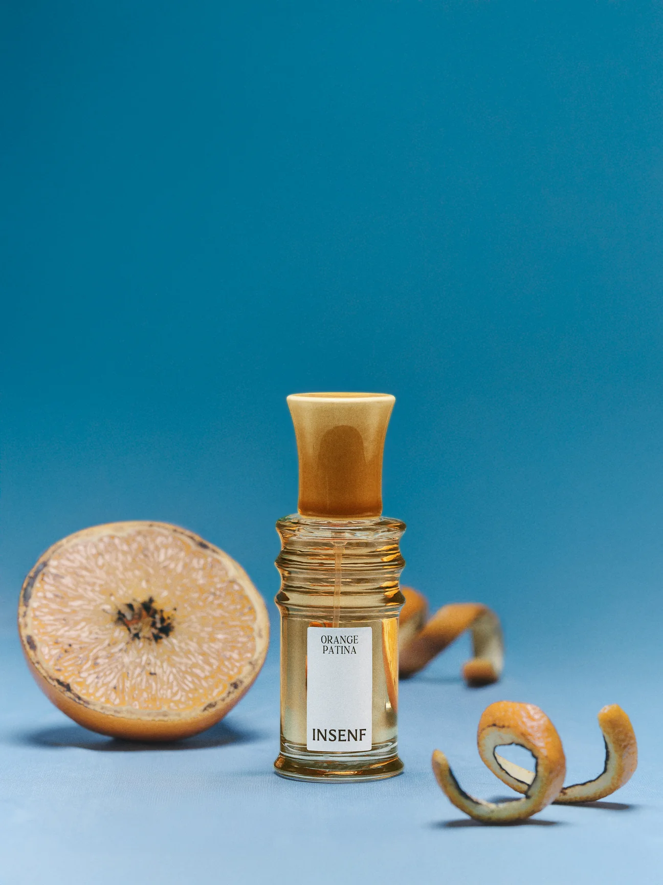 Dvě hlavní témata vůně Orange Patina jsou pomeranč a kůže. Sladká svěžest ovocného akordu je vyvážena zdrženlivou jemností pižmovo-koženého tónu, přičemž pudrový pyl osmanthu tvoří most mezi oběma světy.