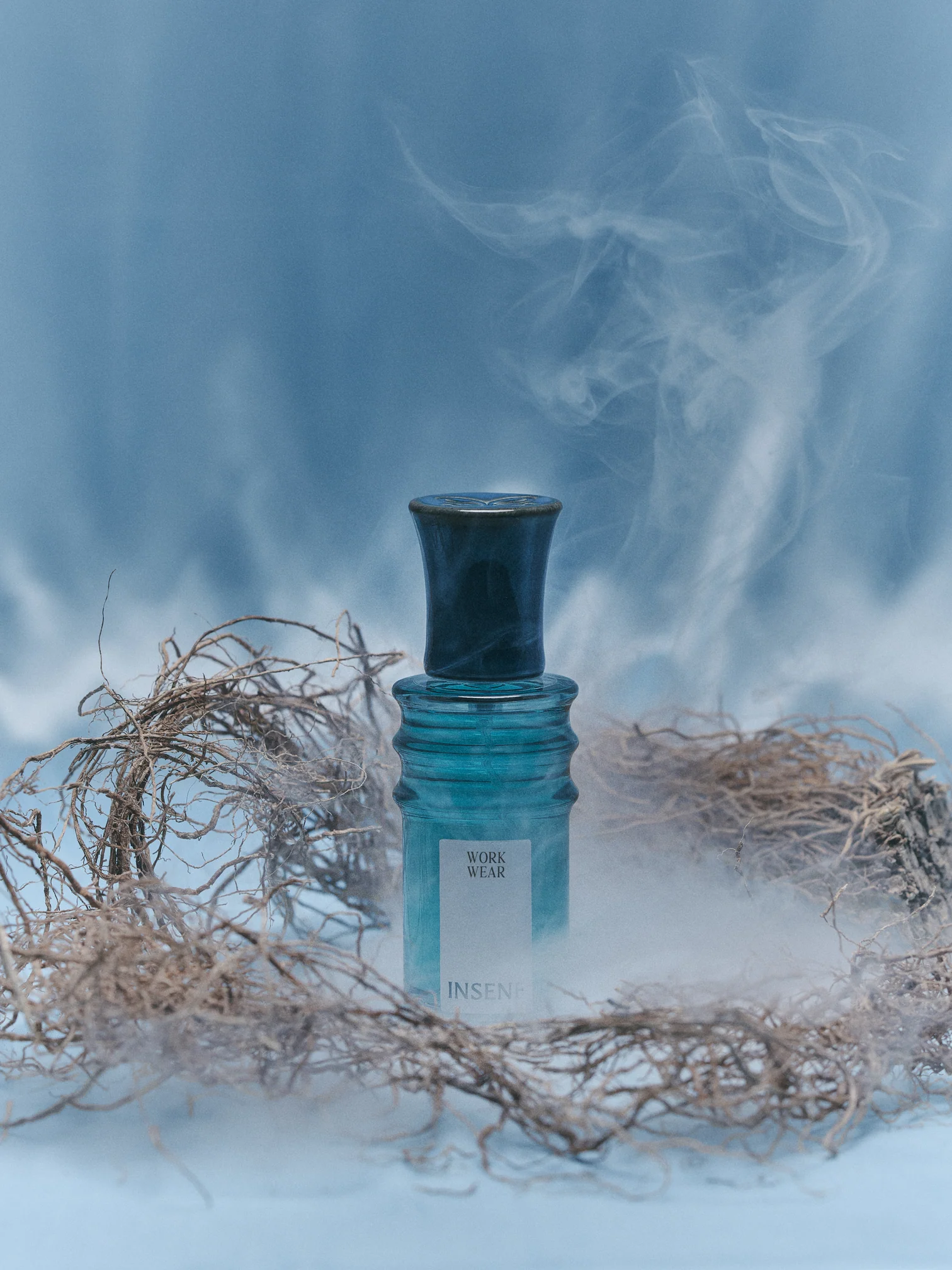 Lahvička i tekutina Work Wear mají modrý nádech z určitého důvodu: značka doporučuje kombinovat ji s obnošeným denimem nebo jinými těžkými bavlněnými látkami v odstínech indiga, robustními botami či teniskami a čistě funkčními hodinkami. Celý vzhled by měl působit co nejvíce ležérně.