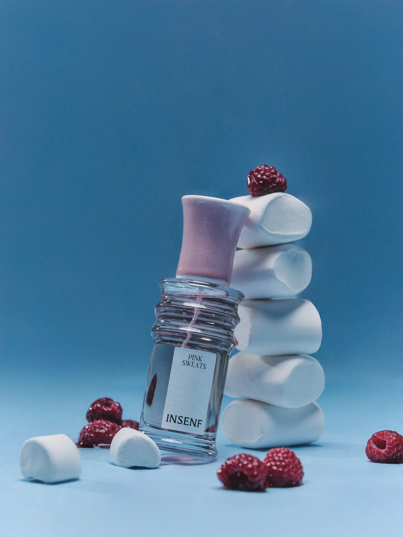 Pink Sweats je jemná, bobulově-marshmallowová vůně – ale překvapivě nikoliv gurmánská. Z bobulí (jahoda, malina, liči, brusinka) pramení ovocná svěžest, z marshmallowu bezstarostná nevinnost. Šampaňské a kytice pivoněk povyšují kompozici na zcela novou úroveň.