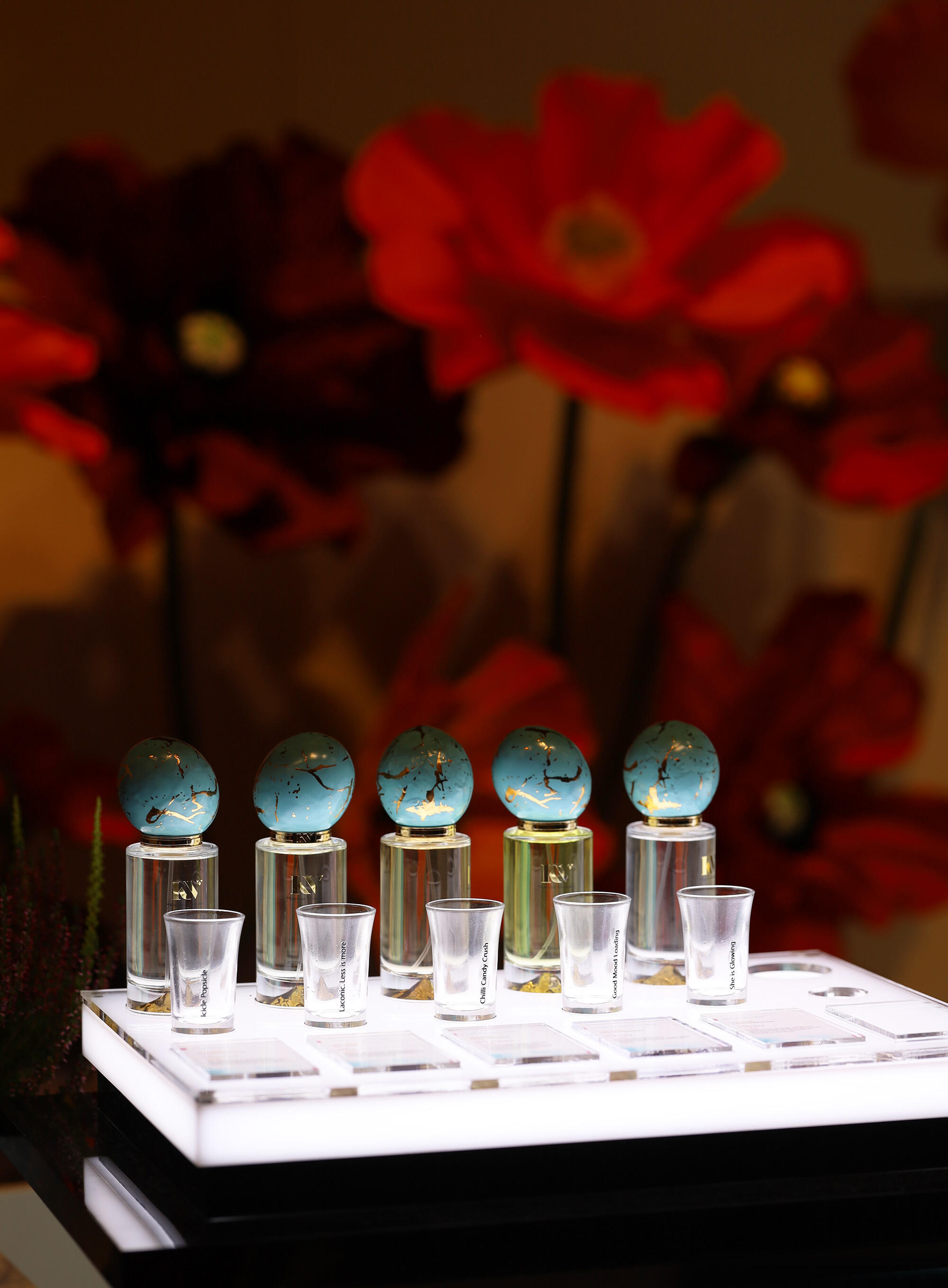 U stánku oblíbené Kateryny Velmenko z KV Parfums se konal parfémový čajový dýchánek. Ochutnali jsme dvojitý akord perského černého čaje se šafránem a růžovou vodou, současně ze skleniček na čaj ve východním stylu a při vůni Not a Morning Person.
