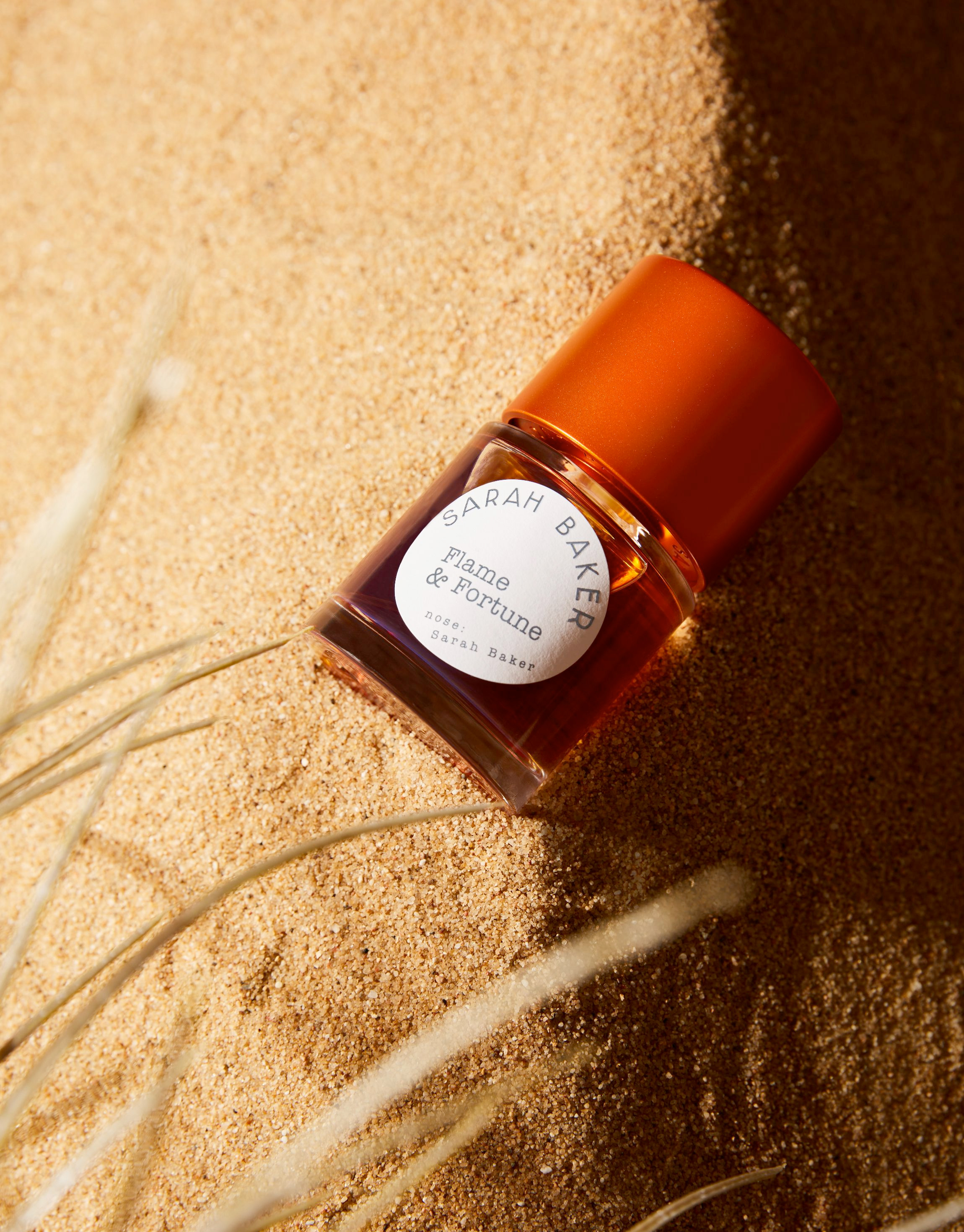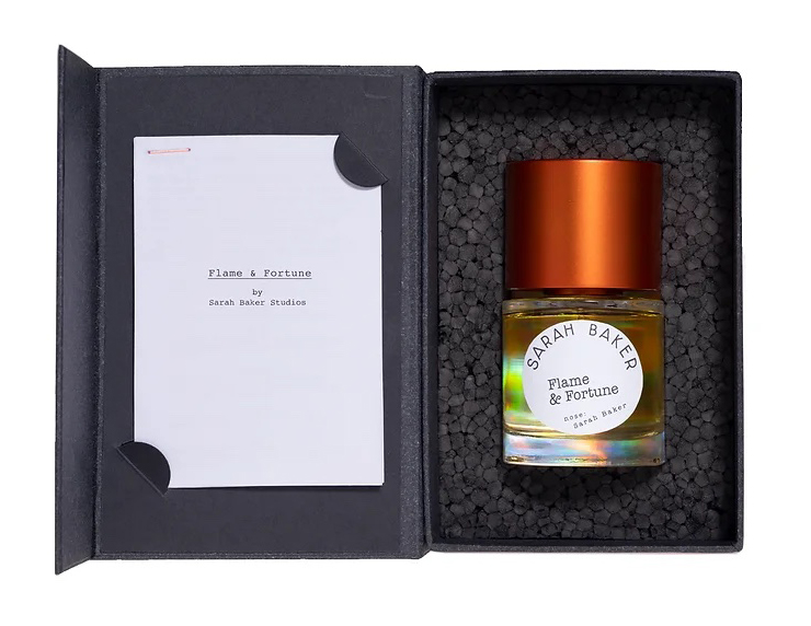 Druhá, Flame and Fortune, je epická ve všech ohledech, dokonce i ve své cestě jako láhev. Byl to první z řady formulované samotnou Sarah a její první pokus o hotový parfém poté, co se naučila parfémování u Ashley Eden Kessler. Vznikal dva roky, a jaký je to vstup.