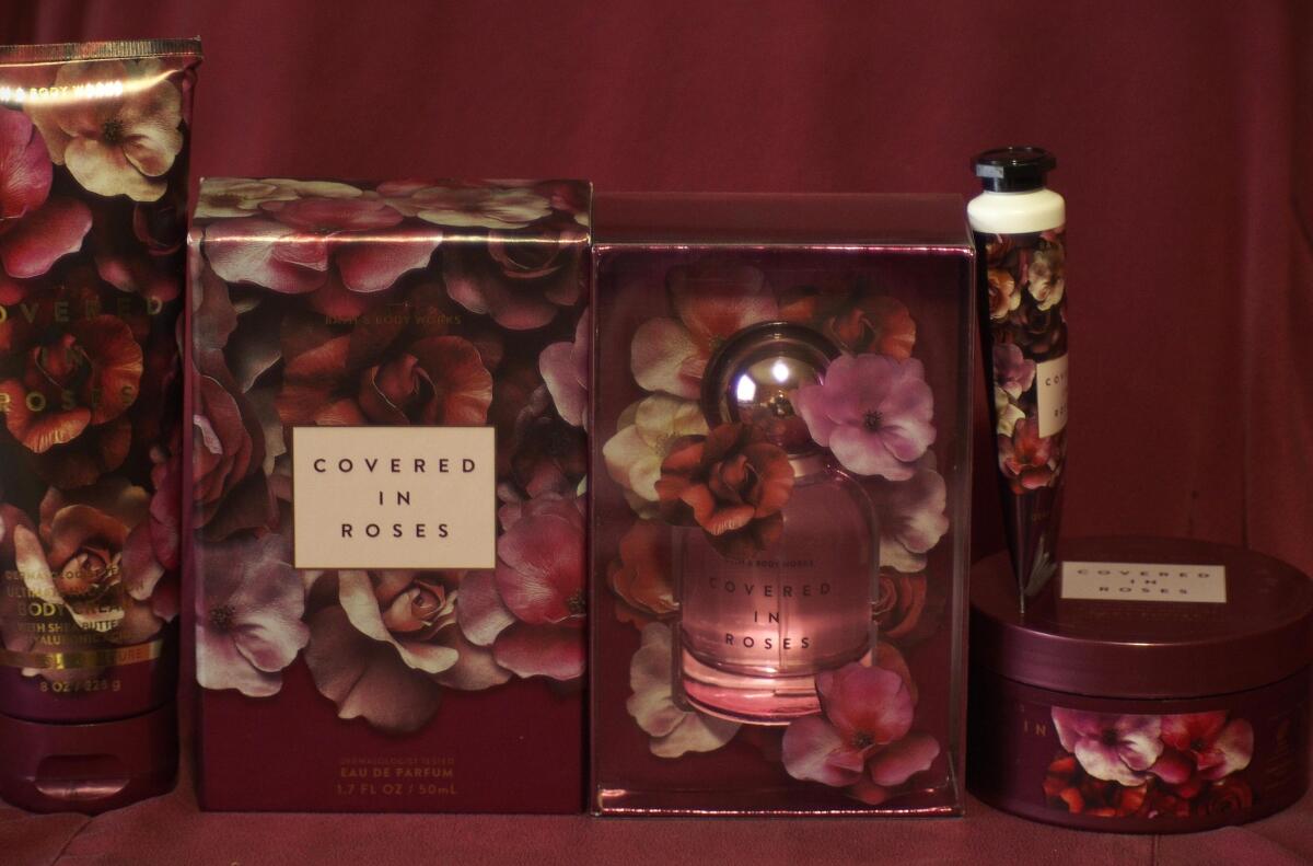 Náš poslední soutěžící, Bath & Body Works Covered in Roses, je extrémně podobný! Tak moc, že ho korunuji vítězem mého malého experimentu! Ve skutečnosti, když jsem poprvé nastříkala každý z nich, dala jsem přednost BBW před Delinou, protože Delina v porovnání s ním voněla plastově a synteticky! Nakonec se vyrovnají, přičemž Delina je díky rebarboře o něco říznější; Covered in Roses je v drydownu o trochu sladší než Delina. Delina také působí bohatším a komplexnějším dojmem, zatímco Covered in Roses je v porovnání s ní trochu prostší. Kromě toho jsou tyto dvě vůně pozoruhodně podobné. Nicméně siláž u Covered in Roses bude tak trochu problém pro milovníky zničující siláže Deliny. Během třiceti minut po prvotním nastříkání se drží poměrně blízko u těla, ale v žádném případě bych ji nenazvala „intimní vůní“. Výdrž se směle může rovnat s 12+ hodinami Deliny — což mě šokuje, protože testuji tělový sprej (body mist), nikoli samotnou parfémovou vodu. Obě vůně totiž stále výrazně voněly v mém bezprostředním okolí těsně před večerní sprchou, tedy po 11 hodinách nošení!