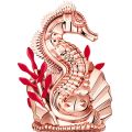 Ptáte se, co s tím má společného mořský koník? Ha! Věděli jste, že tito půvabní tvorové, pardon, ryby, jsou považováni za symbol vášnivé lásky? Jsou jako labutě: když jedna z páru uhyne, druhá, která nesnese odloučení, ji brzy následuje. Kromě toho jsou mořští koníci, nebo spíše hroši, silní a mužní rybí koně, kteří táhnou Neptunův vůz po vlnách. Na uzávěru láhve je navíc vyobrazen mořský koník na pozadí mušle s výrazným designem - typické pro zobrazení Venuše přicházející z moře.