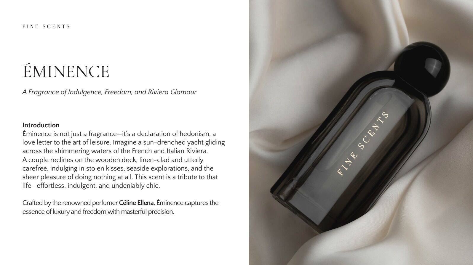 Nosit Éminence je jako nastoupit na jachtu bez cíle – jen s příslibem dobrodružství a požitku. Vůně pro ty, kdo žijí s vášní, hledají krásu v každém okamžiku a vědí, že skutečný luxus je svoboda dělat si, co chcete.