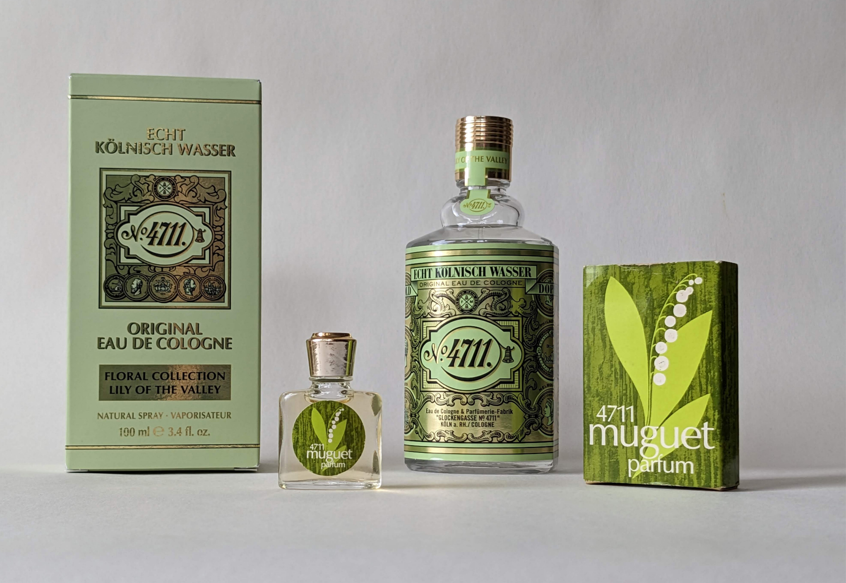 Stejně jako současná Lily Of The Valley má ovoce a růže, ale žádnou zeleň, a je mnohem "mastnější" a indoličtější. Je cítit, že Muguet 4711 byl vytvořen podle parfémových vzorců z doby, kdy lilial, lyral, a dokonce ani hydroxycitronellal (objevený v roce 1905) nebyly k dispozici. Pochybuji však, že je to pravda - možná je to jen styl. Mimochodem, Muguet 4711 se nestal populárním, a soudě podle toho, že se vyráběl pouze v miniaturách, nebyla vůně koncipována jako něco seriózního - jen jako sezónní suvenýr v hezkém flakonu, aby ji příznivci značky, kteří chtějí na jaro kytici konvalinek, nehledali u jiných firem.
