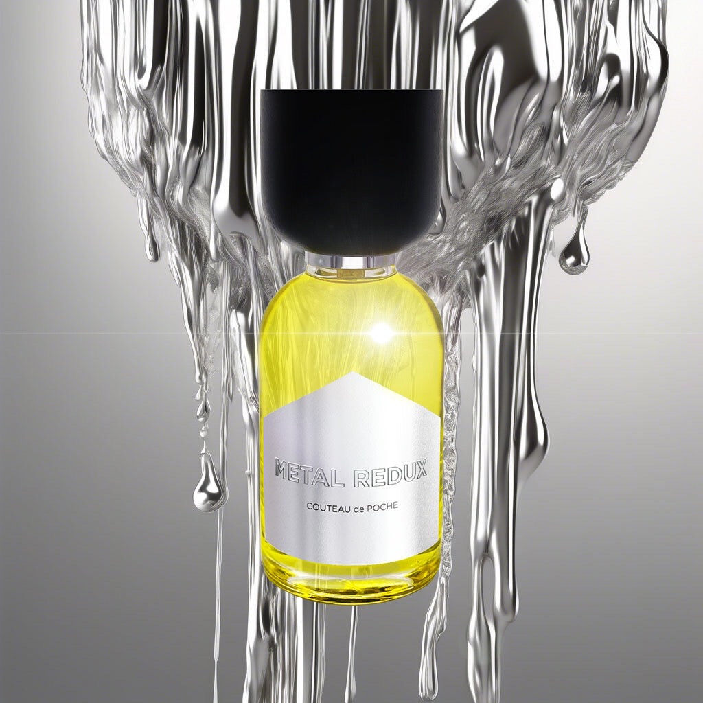 Úvodní tóny krvavého pomeranče, grapefruitu a bourbonské pelargonie vedou do srdce z kadidla, kovu a aldehydů. Se základem z myrhy, santalového dřeva a minerálního jantaru je Metal Redux syrový, ale poetický, evokující třpytivý obraz na pozadí plátna jasné modré oblohy.
