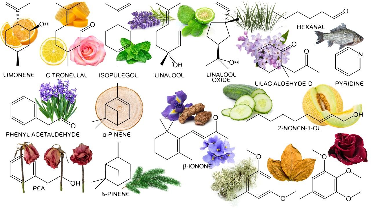 V případě Rhododendron adamsii je dominantní vůně nepochybně aromatická, podobná vůni kořenitých bylin. Jeho vůni utvářejí terpeny, jako jsou dřevité pineny podobné borovici, svěží pepřově balzamický myrcen a citrusový limonen, spolu s terpenickými alkoholy, jako je mátový pulegol a levandulově růžový linalool. Řada sloučenin jí dodává komplexní květinový profil, včetně fenyletanolu (který voní jako lehce zvadlé okvětní lístky růží), hyacintového fenylacetaldehydu, fialového beta-iononu a svěžího, vodnatého šeříkového aldehydu. Svěžest je dále umocněna alkoholy, jako je cis-3-hexenol ("listový alkohol" se svěží okurkově-melounovou vůní), a aldehydy, jako je citronellal (se svěží kořenitostí podobnou citronové trávě). Kromě toho methoxytolueny přispívají hlubokými dřevitými, mechovými a tabákovými tóny se sušeným ovocem a květinovými nuancemi.