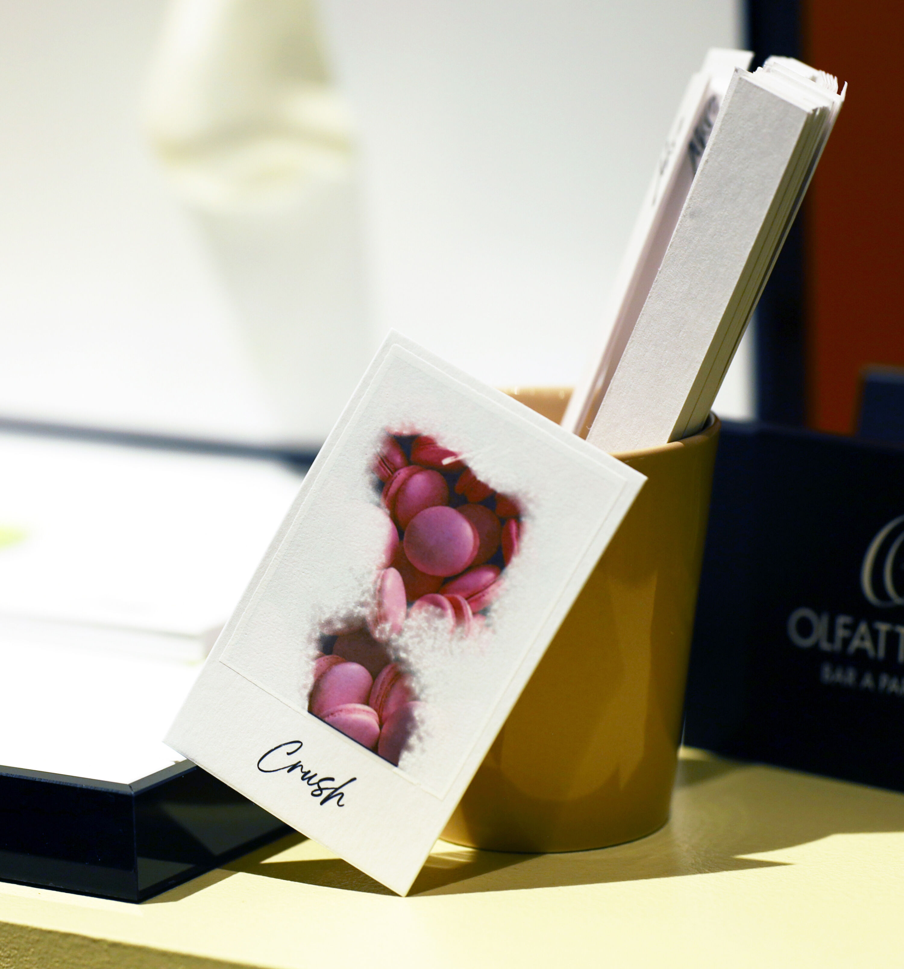 Když cestuji, třeba v Asii, je zvykem darovat čokoládu. Läderach, jezdíme do PIA, kupujeme směs makronek. Nejvíc si užívám růžovou makronku. Snažil jsem se analyzovat tu křupavou část – použil jsem trochu mandlí a vlašských ořechů. Máme krásný základ ze Smell-To-Taste akordů od Firmenichu – crème chantilly, tedy šlehačku, nadýchanou, úžasnou. Máme asi 60–70 těchto akordů. Máme základ cappuccina, na kterém stojí Black Opium.