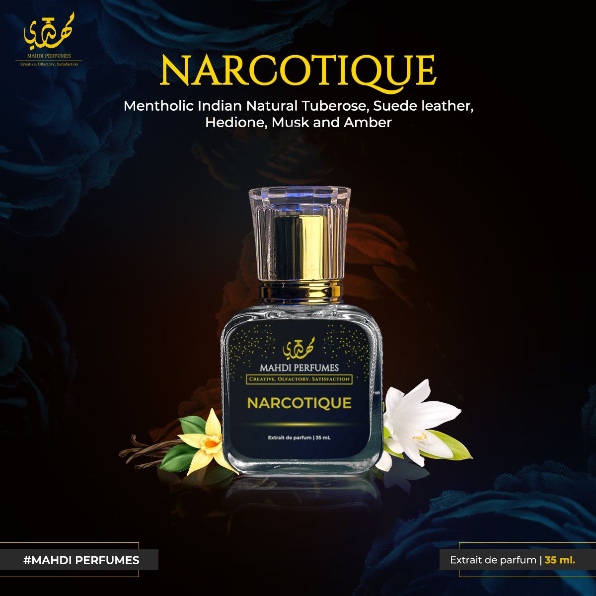 "Narcotique slouží jako óda na hluboký obdiv, který chovám k dílu Christophera Sheldrakea, zejména k mistrovskému dílu Tubéreuse Criminelle, které ve mně zažehlo vroucí touhu přetvořit jeho esenci pro mou klientelu, vedenou mou náklonností k bílým květinám," poznamenal Ali. Pro mě osobně byla Narcotique docela náročná vůně. V mých poznámkách se píše: "Silný kafrový počáteční závan, pak se uklidní do poněkud tabákově květinové s broskvovými tóny; možná kmín v dry downu – tělesná; voní jako po... no, však víte...!!!" (Omlouvám se, jestli je to hrubé, ale taková byla moje okamžitá asociace).