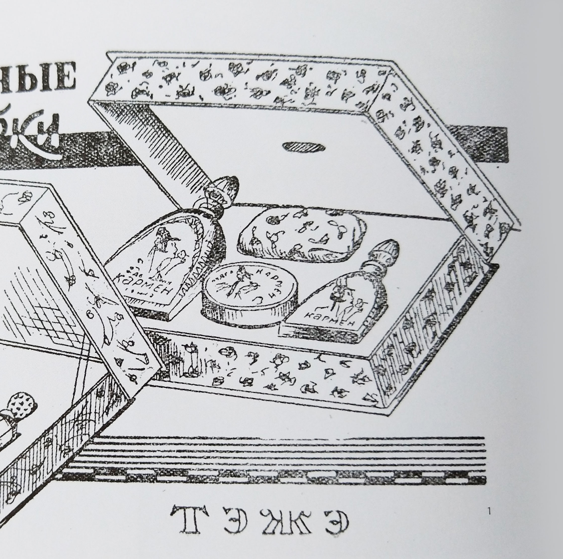 Díky tomu je pravděpodobné, že se Carmen objevila někdy poté, co se továrna vzpamatovala z revolučních zmatků a obnovila výrobu parfémů v roce 1923 - možná v polovině nebo na konci dvacátých let. Jisté je, že ve 30. letech 20. století již etiketa zobrazovala španělskou krásku vonící po růži, jak je vidět na ilustrované příloze k ceníku TEZHE (zkratka pro Sovětský trust éterických olejů a parfémového průmyslu) z roku 1938.