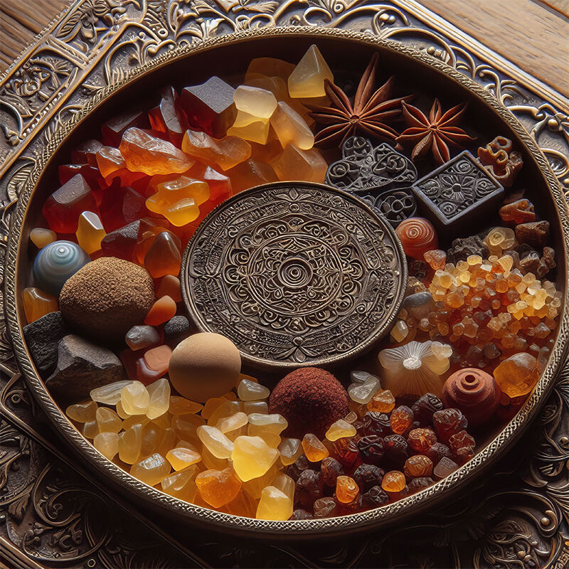 V srdci parfumerie tento odkaz reprezentovaný kadidlovou nótou stále pulzuje a stává se nadčasovým. V tomto ohledu přináší olibanum/ kadidlo (Boswellia carterii), aromatická pryskyřice získávaná ze stromů rodu Boswellia, vůni tichých kostelů a posvátných pouští, které jsou pro některé národy protkány příběhy válek a čistých rituálů víry. Hořkou myrhu (Commiphora myrrha), která je považována za více melancholickou, lze považovat za mocnou složku používanou při pohřebních a požehnávacích obřadech, které jsou u národů Blízkého východu velmi rozšířené. Kopál (Bursera Spp. nebo Protium Spp.) z pralesů obývaných Mayi, indické santalové dřevo (Santalum album), jihoamerické palo santo (Bursera graveolens), každá z těchto složek v sobě nese nejen specifickou vůni, ale i duchovní kód předků, který dosud nebyl vymazán. Profesionálové ve světě parfémů, samotní parfuméři (nejmodernější alchymisté), to vše dokážou převést do pryskyřičných, hřejivých, kouřových, éterických akordů s nadějí, že tyto posvátné vůně můžeme nosit na své kůži.