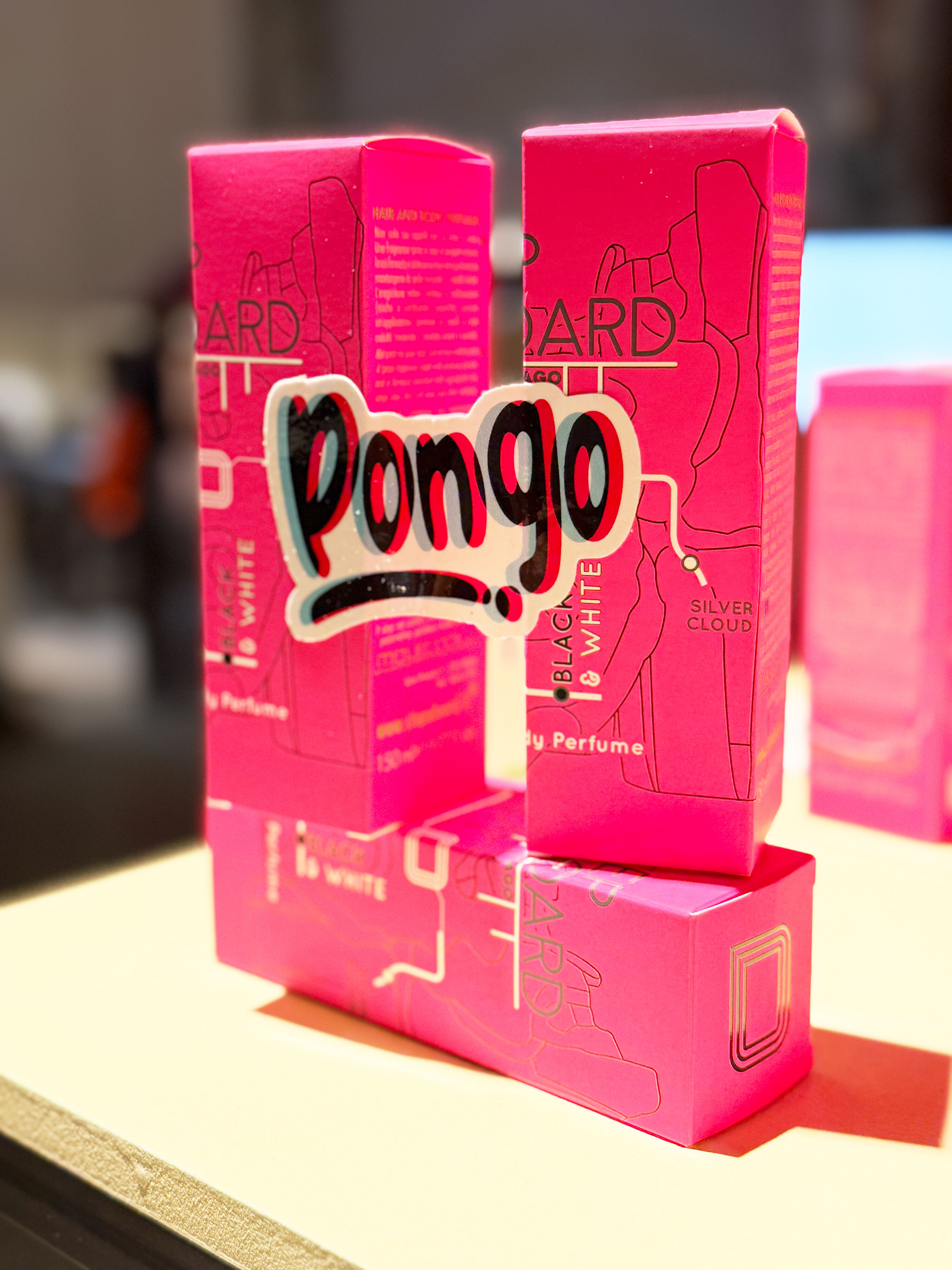 Pongo ručně ozdobil flakony Black & White a navrhl také samolepku na krabičku. Inspiraci čerpal z portrétu Marilyn Monroe od Andyho Warhola, který pojal ve svém vlastním stylu. Marilyn byla značkou zvolena nejen pro svůj ikonický filmový obraz, ale i pro své lidské kvality: křehkost, přirozenost, nevinnost a jedinečnost. Její krása je zde ukrytá pod maskou disneyovské kachny – a abyste ji spatřili, musíte použít 3D brýle s červenými a modrými skly, které jsou součástí limitované edice.
