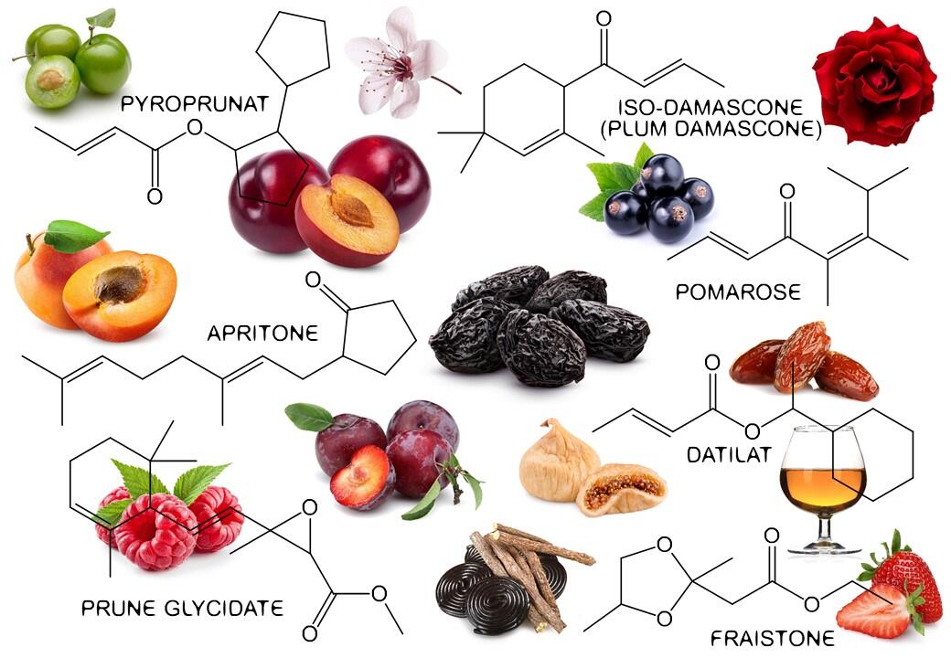 Stejně jako většina ovoce a bobulí má i přirozená vůně švestky působivou paletu vonných látek – od aldehydů po terpeny. Přesto její charakter určují hlavně někteří klíčoví hráči.