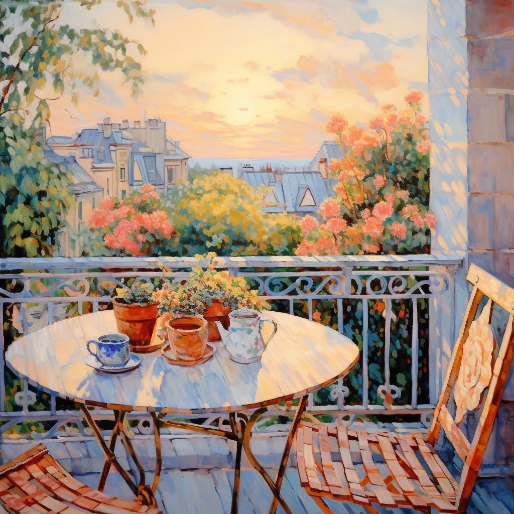 Je ztělesněním velmi útulného, příjemného rána v Paříži, kdy je obloha ještě měkká a jarní a bílé obláčky pomalu plují po modrém nebi nad střechami domů.
