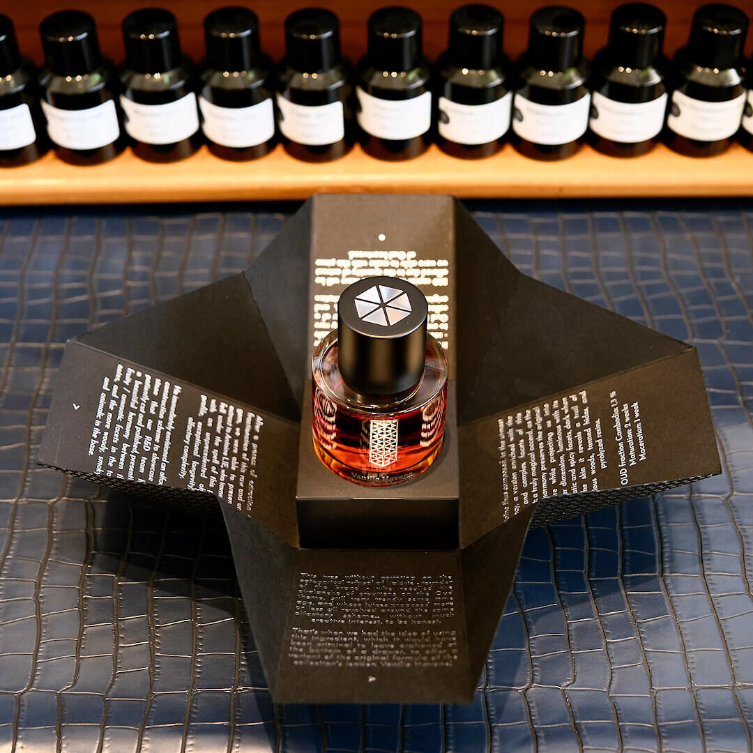 Aby taková ingredience mohla vyniknout, bylo třeba kulisy stejně silné. Tou kulisou se stala Vanille Havane – parfém plný kontrastů: gurmánská kulatost vanilky, hřejivost havanského tabáku, kořeněnost ovoce nasáklého rumem. Aby však vůně mohla obejmout ruskou kůži, musela být znovu vyvážena. Této výzvy se ujal mistr parfumér Antoine Lie. Zjemnil sladkost, dal prostor kouři, dřevu i živočišným tónům. Výsledkem je nová identita, kde samet a surová kůže koexistují bok po boku. Nejde jen o parfém, ale o napětí: o dualitu, kde samet a surová kůže splývají v jedinečné, silné harmonii.